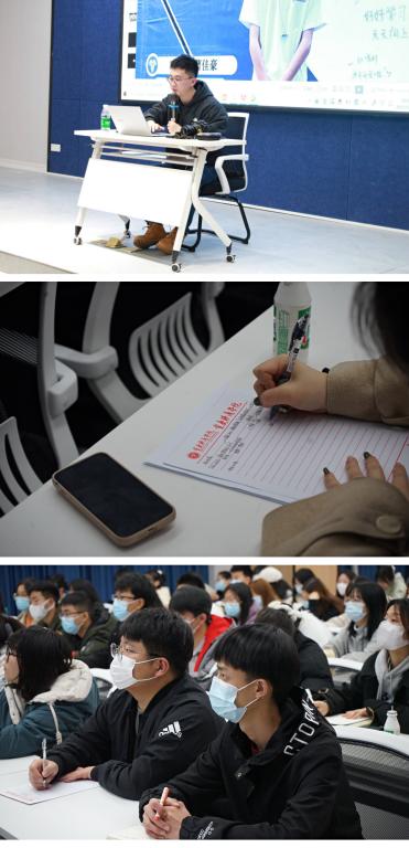 此外,彭昇老师还将自己和学生的优秀作品分享给学员们欣赏,带领大家体会拍摄手法的多样性、拍摄角度的重要性以及拍摄前构思的必要性,让他们在观看优质视频的同时可以了解到更多专业知识和专业手法。青马学员们认真聆听,将彭老师分享的各种拍摄手法记录在册。在彭老师的专业讲解下,拍摄知识从模糊走向清晰、从平面化走向立体化,在青马学员们的心中留下了深深的烙印。