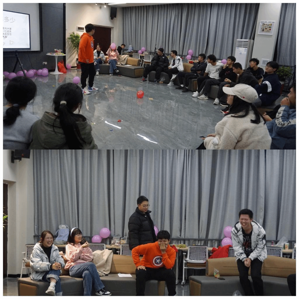 活动开始,团支书赵永洪给支部成员播放了一个由支部成员的合照和个人照组成的视频,引起支部成员的共鸣,快速进入游戏环节。