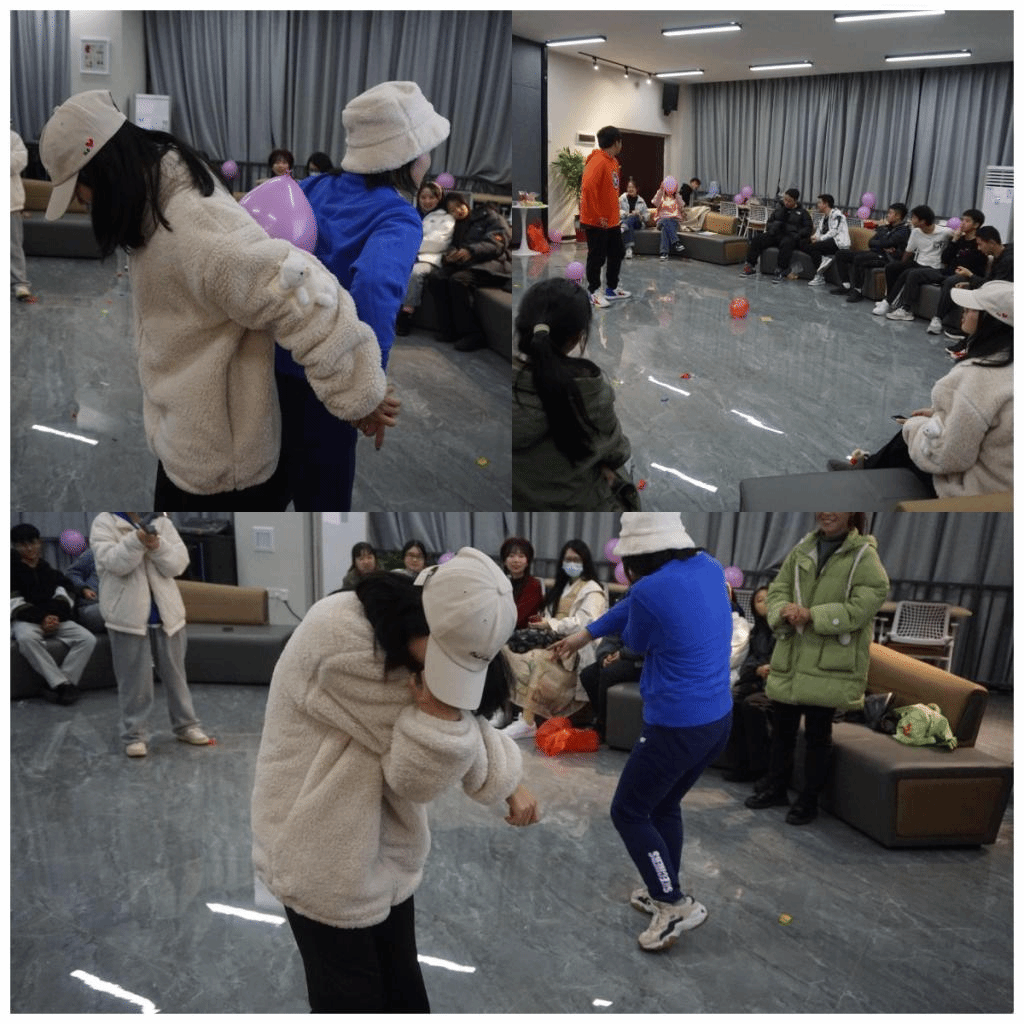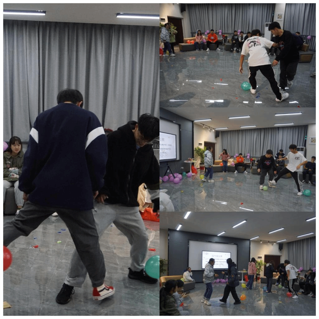 踩气球,作为本次活动的开场游戏,其意义非同一般。它提起大家的兴趣,让大家能够更好的融入本次活动。只见白衣男孩大步一跨,眼看就要踩爆黑衣男孩的气球,不料,黑衣男孩身手敏捷,迅速一闪,逃脱了白衣男孩的攻击......同学们都积极参与进来,在互相斗智斗勇中展现出同学们的精气神,表现出本次完超活动的主体“活力”。大家在游戏中互相配合,增强同学们之间的凝聚力,树立互相配合互相支持的团队精神,形成积极向上的气氛,拉近同学们之间的距离,有利于构建一个更加充满活力更加团结的班集体。
