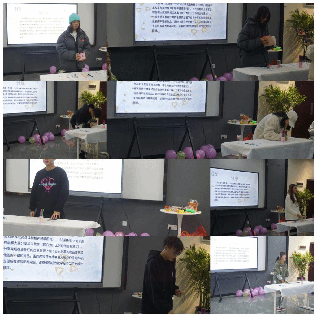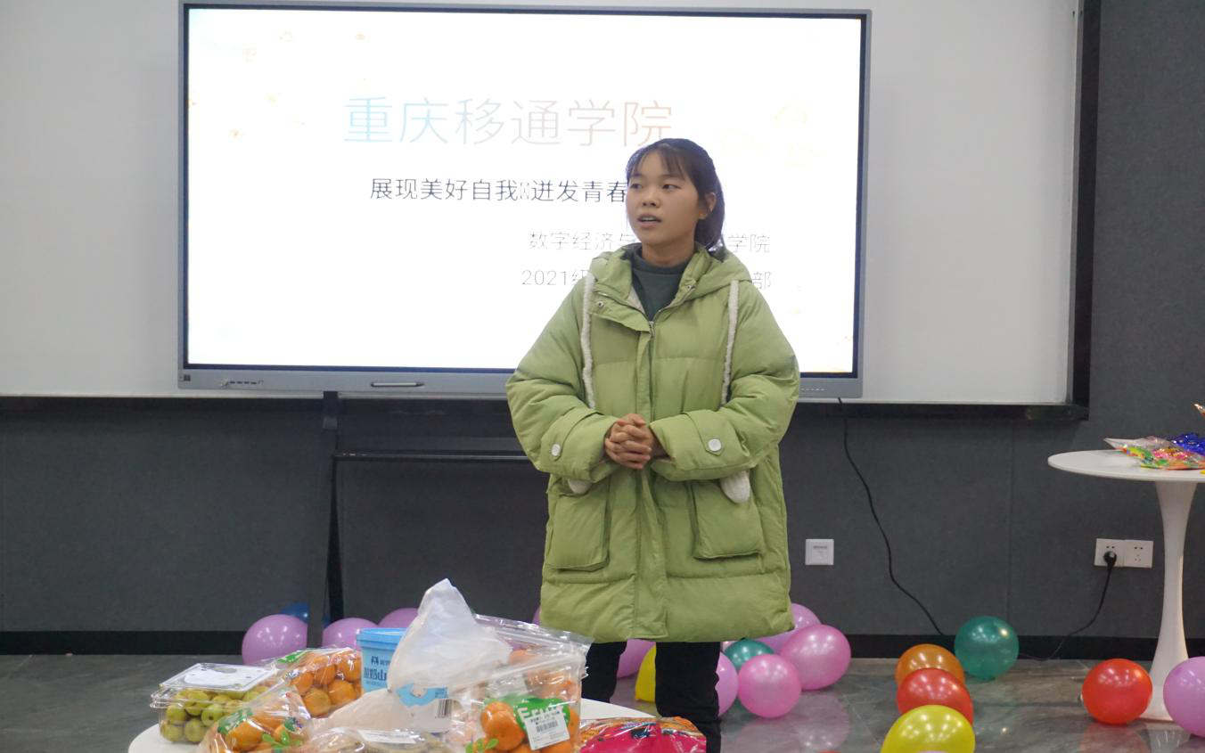 同学们第一次出现在大学校园里时,一定会对大学生活充满担忧和期待!而这恰好是因为缺乏新时代青年的青春活力。为帮助本团支部成员们尽快融入大学生活,让团支部成员感受到大学生活的青春绚烂,特此开展以“活力”为主题的支部特色集体活动以激励团支部成员奋斗向上,增强支部成员集体意识、归属感,激发支部活力。2021级数字经济02团支部联合数字经济与信息管理学院组织部于2021年12月10日18:00在重庆移通学院南湖书院中德创意写作工坊开展主题为“展现美好自我,迸发青春活力”的完满超级团支部活动。