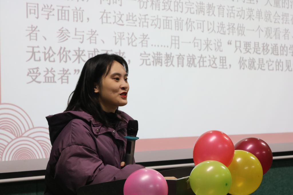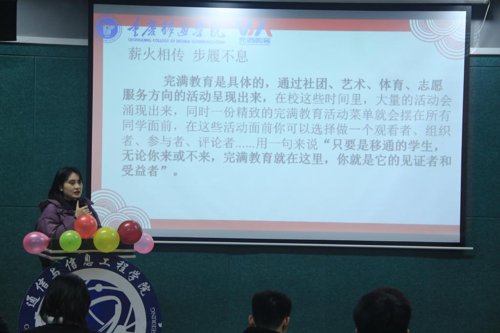 大学我们是进入社会的最后一个缓冲期,在这段时间里我们有足够的青春去追逐热爱,追求梦想。大学不同于中学时期的唯有读书才是王道,在大学里不能一味的沉迷于书海,大学的教育更多的是讲究全方位的发展,追求更加完满的自己。但是如何去发展?怎样才算是有效发展?面对这一条条疑问,通信与信息工程学院于2021年12月10日中午12:00在爱莲书院多功能影音室特此开展了重庆移通学院“你好!达人”第九季完满达人宣讲会。本次宣讲会邀请到了第九季完满达人——“艺术达人”张玉婷同学为大家讲诉自己在完满之路上追逐艺术梦想的经历及其自己所获得的经验。
