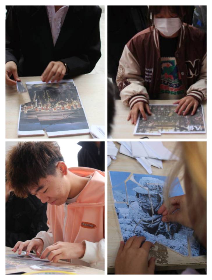 以《长津湖》、《八佰》等优秀党史电影中的部分场景制作拼图模板,让同学们在玩拼图游戏的过程中对优秀历史故事产生兴趣。发生在抗美援朝第二次战役中的长津湖战役、淞沪会战中的“八百壮士”等故事,成为我们优秀的故事原型,拼图过程中,工作人员会详细讲解这些经典场景、历史故事。