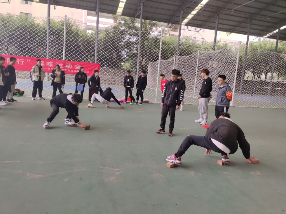 本着“友谊第一,比赛第二”的旗号,有条不紊的保证了比赛顺利进行。此游戏的玩法是将每支队伍派五人,每组以纵队形式从起点出发,全队队员以5块砖移动到对面,中途务必利用一人脚踩的砖移动,每次只能移动一块砖前进,赛场上小组成员配合默契,奋勇直冲,班级成员密切配合,发扬了团队精神。本次比赛不但活跃了同学的气氛,提高了学生运动的积极性,同时培养了学生的团队意识和集体荣誉感,不但赛出了水平,还展现了电气类的风采。