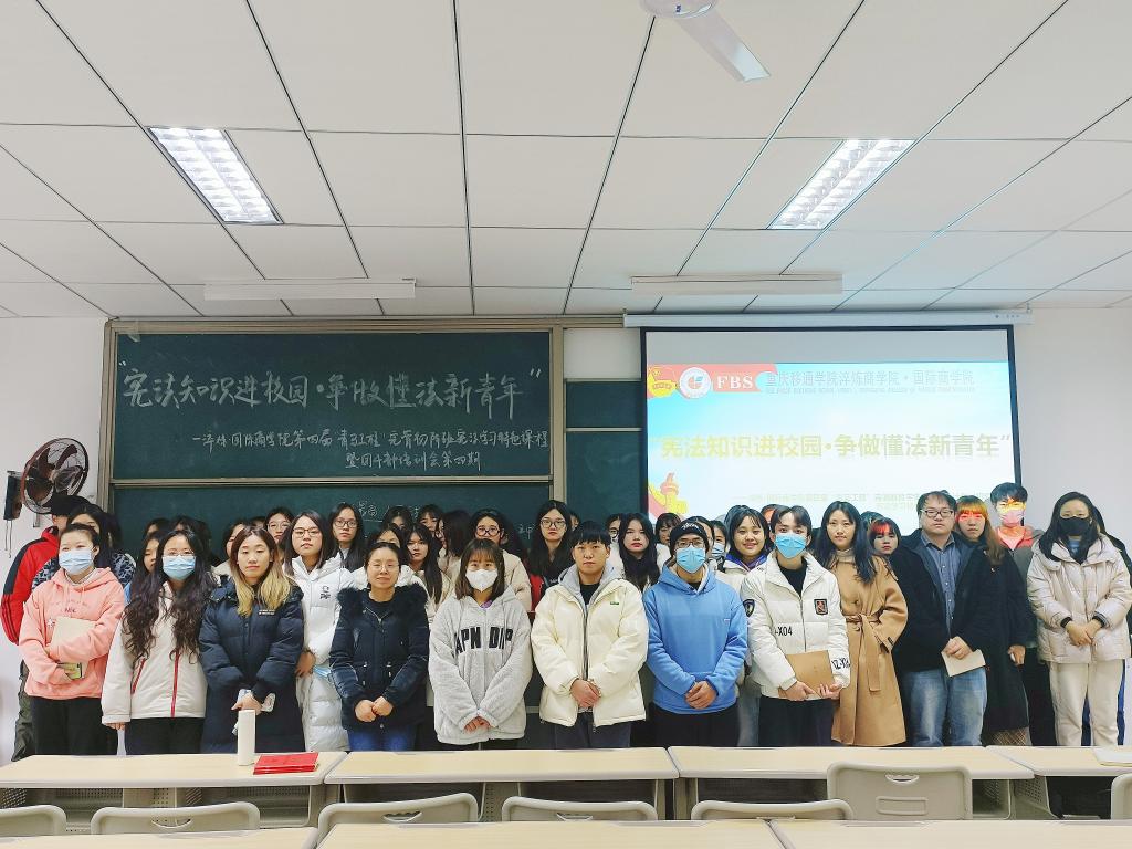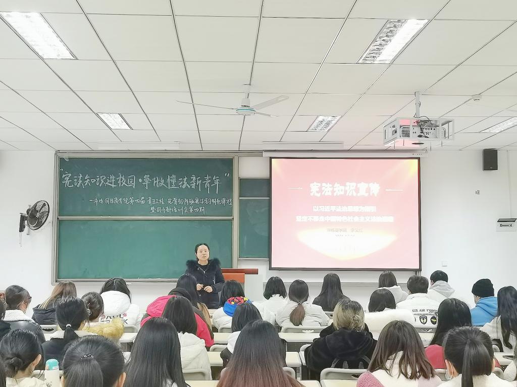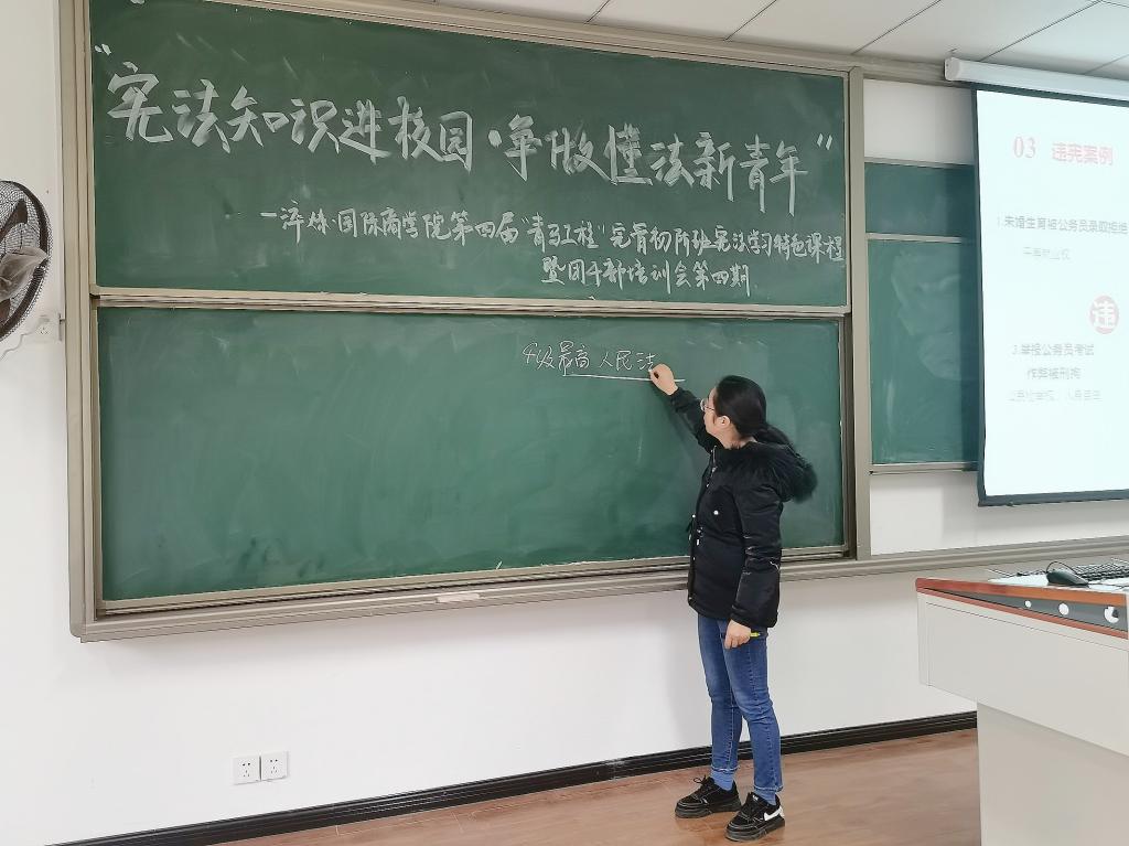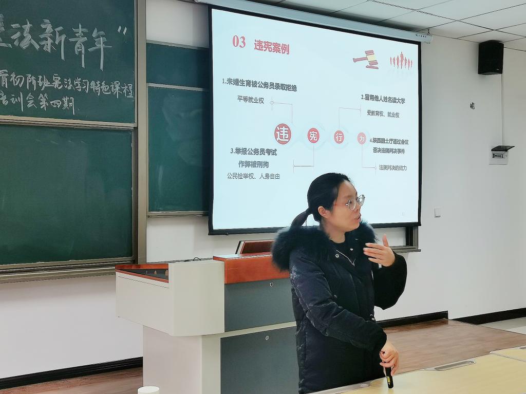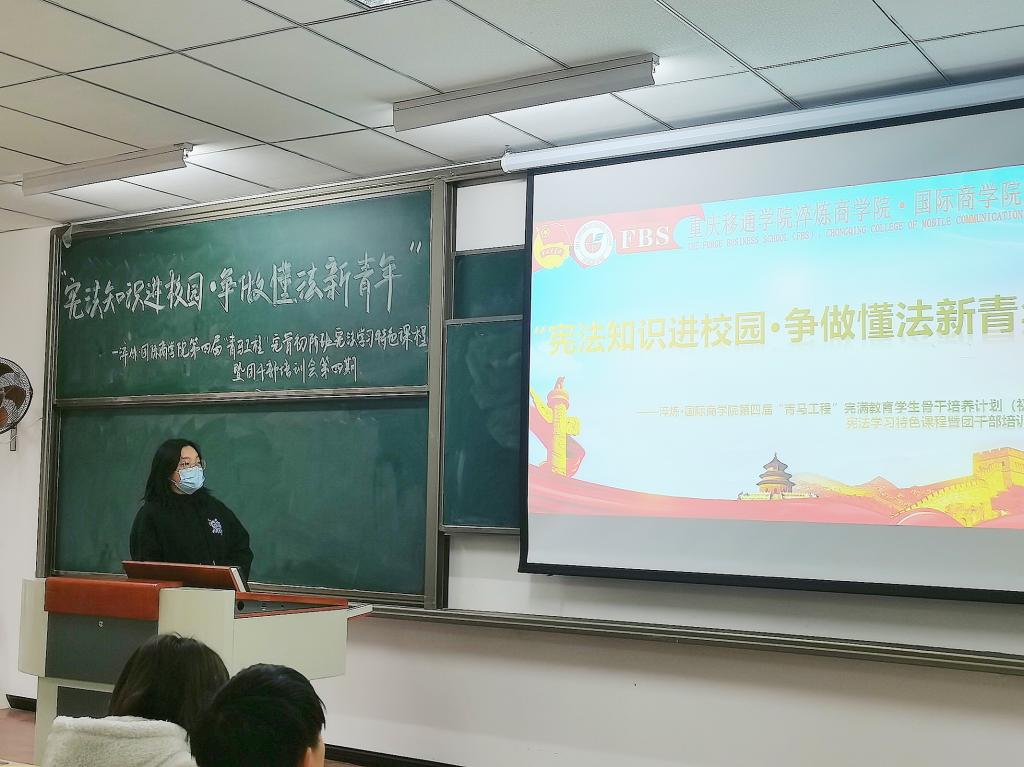 为进一步提升青马学员及班团干部政治理论素养与综合能力,营造尊法守法的良好社会氛围,引导其明确宪法的重要性,培养信念坚定、德法兼修、明法笃行的高素质法治人才。淬炼·国际商学院组织部于12月8日中午12:00在9105面向青马工程完骨初阶班学员及班团干部们开展以“宪法知识进校园·争做懂法新青年”为主题的淬炼·国际商学院第四届“青马工程”完满教育学生骨干培养计划(初阶班)宪法学习特色课程暨团干部培训会第四期。本期课程特别邀请到淬炼·国际商学院基础教研室主任李义红对青马学员们及班团干部们进行宪法知识的讲解。