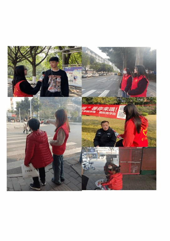 亲身下河知深浅,亲口尝梨知酸甜。我们新时代的中国青年,更应该胸怀理想,志存高远,追求昂霄耸壑的气象。亲自体验与实践,方知其中的心酸与满足,同学们披上红色志愿小马甲,在校外去往马路边当起了志愿者,参与文明交通行动,引导人们文明出行,创造井然有序的交通环境;同时在校内给同学们做12月4日的国家宪法日宣传与普及。每一个志愿服务之举,都包含着深刻的爱,都化为温暖的光束,照耀着整个社会,全体成员在实践中体会志愿者服务工作的不易,不断提升自我的社会责任感于民族精神。