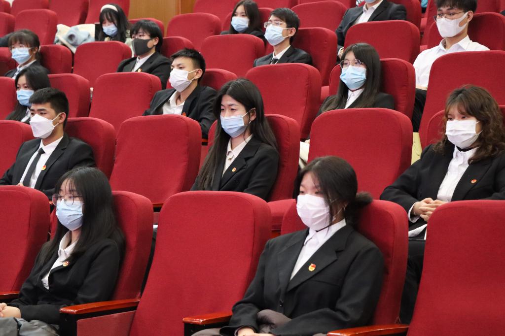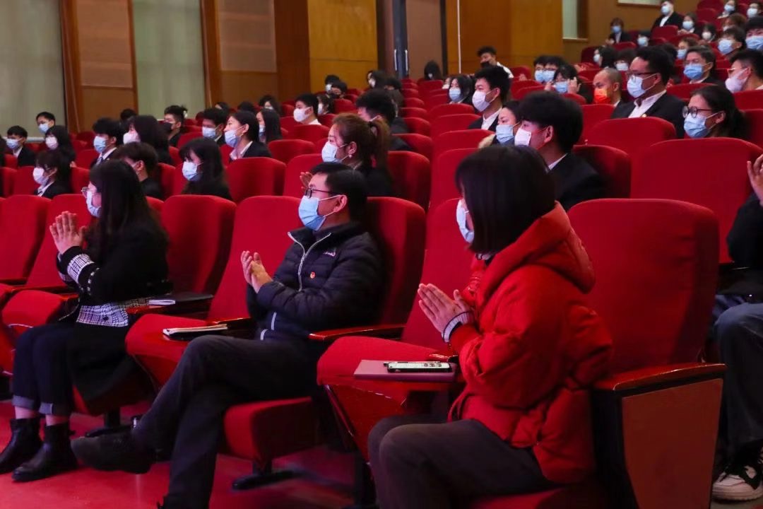 “未来属于青年,希望寄予青年”在授课的最后,潘毅部长带领学员们一起朗读习近平主席对青年的寄语。爱国情怀在我们心中萦绕,请党放心,强国有我。我校青年学生在朗读中深刻感受到习近平总书记对青年的厚望和期待,懂得了时代青年在历史长河中的重要地位,牢记了自身在时代中的光荣使命,深刻意识到身为青年的责任与担当。