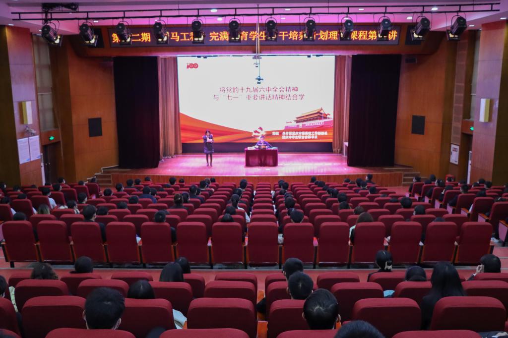 为加强我校第十二期“青马工程”完满教育学生骨干培养计划学员的理论知识储备,深入贯彻学习习近平总书记系列讲话精神,推动党史教育深入开展,进一步明确新时代青年的责任担当。12月8日共青团重庆市委高校工作部部长、重庆市学生联合会秘书长潘毅莅临我校为青马工程学员开展以《将党的十九届六中全会精神与“七一”重要讲话精神结合学》为题的主题讲座,并同我校党委副书记、副校长周伟就高校团学深化改革、“第二课堂成绩单”制度实施情况、书院建设等进行了互动交流。