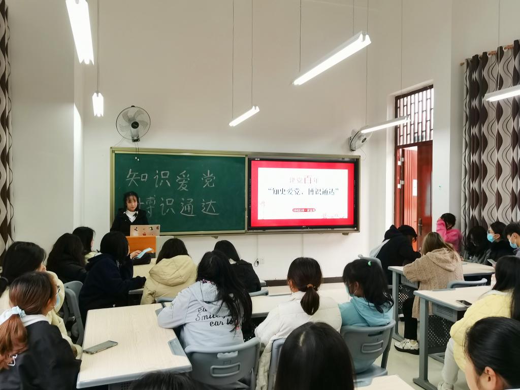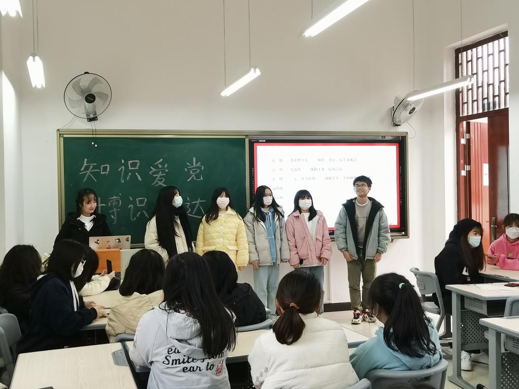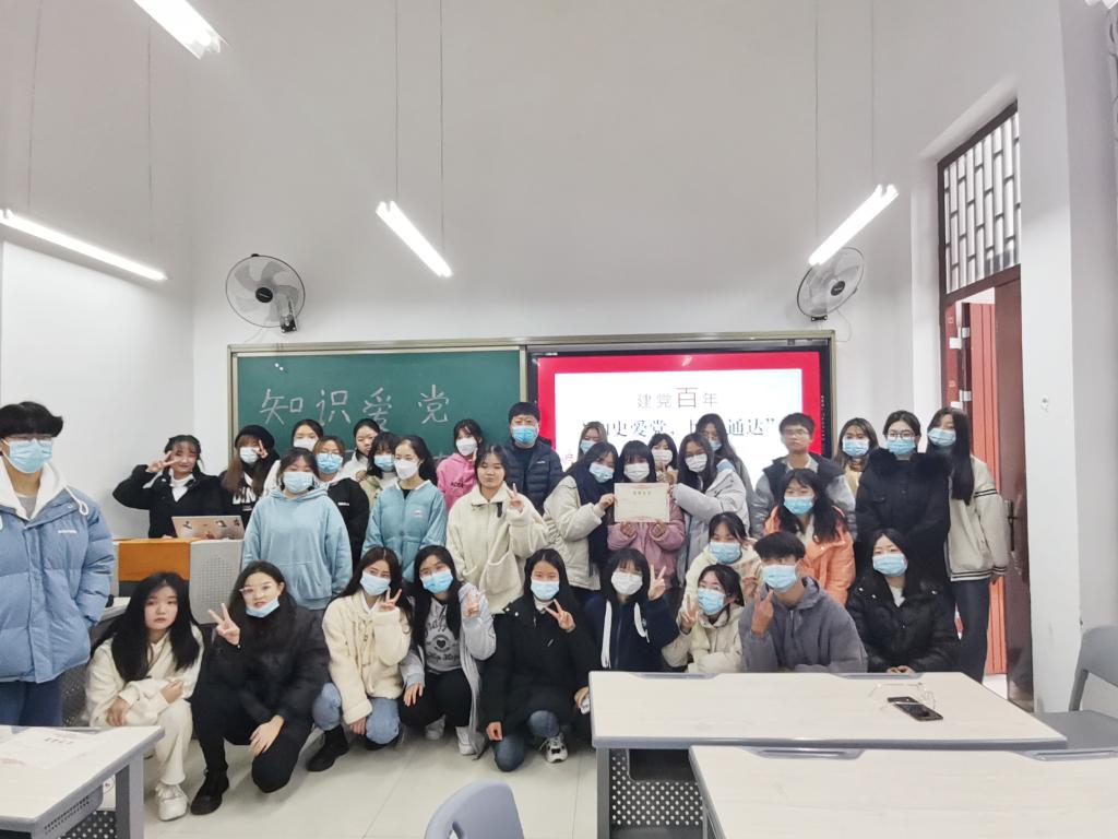 爱党不是潮流,是骨子里的责任。中国共产党建党百年,为讴歌中华民族实现伟大复兴的奋斗历程,继承革命先烈的优良传统,增加全体同学的党史储备。外国语学院05022109团支部特于2021年11月19日,在天渠教室举办“知史爱党,博识通达”外国语学院05022109团支部完满超级团支部主题活动。智能工程轨道专业冯铁成老师出席本次活动,外国语学院05022109团支部全体成员参加本次活动。
