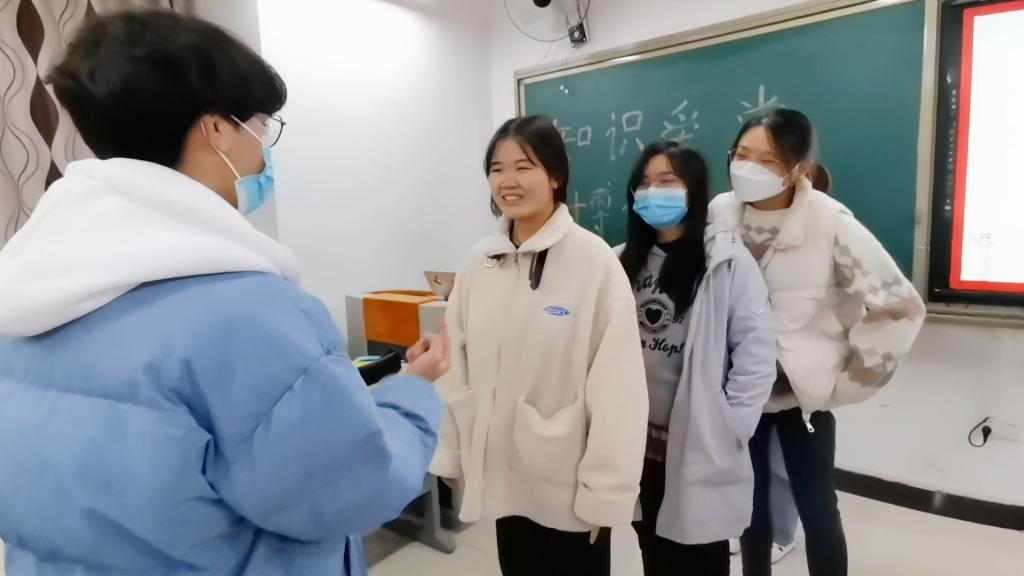 经历一系列知识竞答,娱乐环节登场,这帮助同学们放松。“反常态”各组分别派一个人作为对方指挥者,其余人员则要做出与他所喊相反动作,同学们都积极参与。老师也参与到此环节,老师出题,他们作出相反的动作,同学们在下面看的十分有趣。