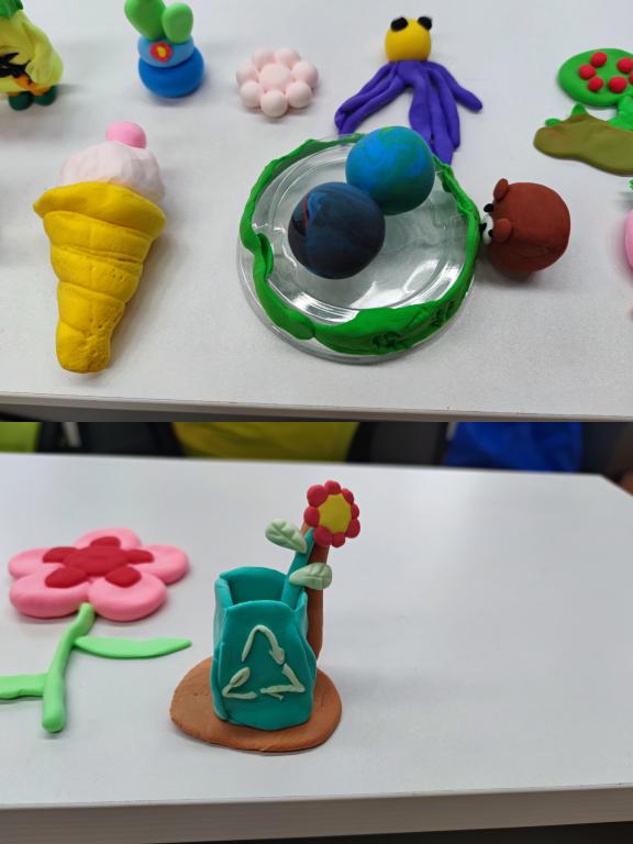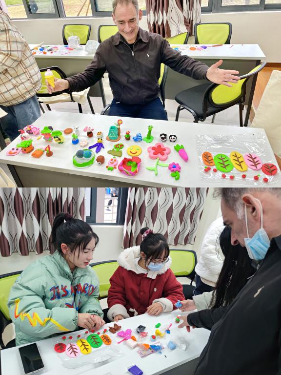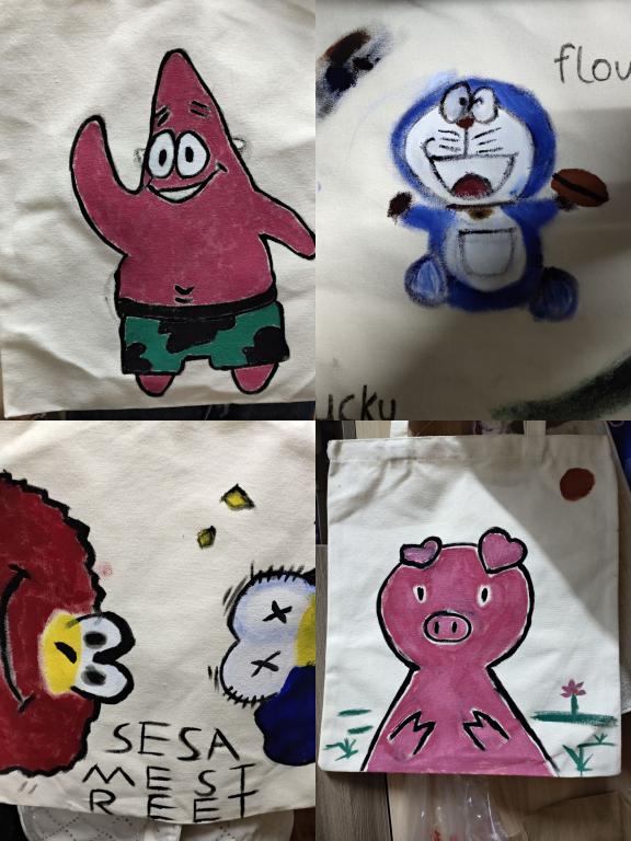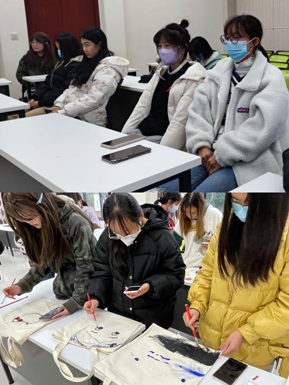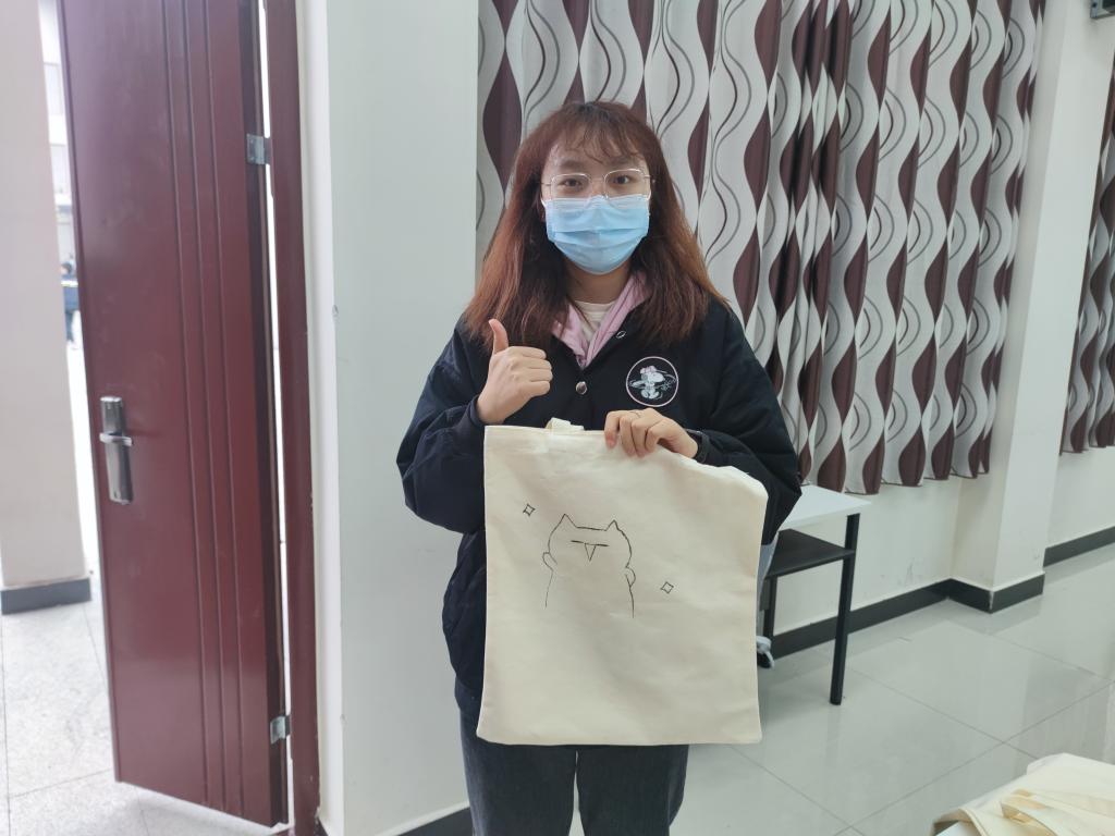 本次活动的最后一个环节,也是最活跃最热闹的一个环节。参与者们需要将手中的彩泥做成各种各样的动植物。雕刻好细节、拿捏好形状,这都对参与者们动手能力要求极高。接着,主持人发放空白布袋,参与者拿起手中的画笔,将精美的图案绘在上面。一个环保布袋就浮现在眼前。参与者们奇思妙想,创作出一个又一个精美的作品,最后英语外教Clive也来到了活动现场,与参与者们进行愉快的互动。主持人将其中一个手袋送给2020级英语七班谭继霞学姐,并向学姐宣传关于环保的知识。