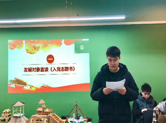 会议严格按照党组织接受预备党员程序开展。大会开始,发展对象们逐一进行入党志愿书的宣读,并向党组织汇报自身对党的认识、入党动机、个人经历以及在校表现等。发展对象们都真情的表达了对党的向往,对党的忠诚,表示坚定不移跟党走,为党的工作付出自己的力量,为共产主义事业奋斗终生。