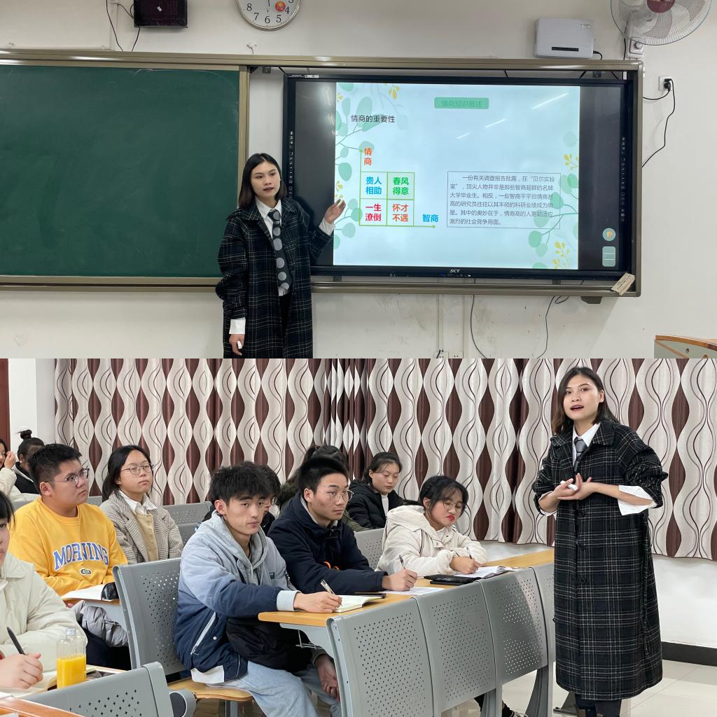 本次培训特邀请到淬炼·国际商学院、心理健康教育与咨询中心心理咨询师曾玉娇老师作为主讲人。曾老师在做完简单的自我介绍之后,以带领同学们认识自己作为切入点引出本次培训的主要目的是教大家控制自己的情绪和情商的培养。情绪可以牵动行为,曾老师请学员们分享近期最牵动自身情绪的事情,学员们纷纷讲述最近的烦心事,曾老师也一一提供建议。大部分学员都指出自己的烦心事是时间分配不合理,导致本末倒置什么事情也没做好。对此曾老师告诉学员们分清楚自己想要的到底是什么,如果大学的目标是考研,就应该把主要精力放在学习专业知识上;相反如果是想提升自己全方面的能力,那么多参与社团活动也是提升自己能力的一个重要因素。