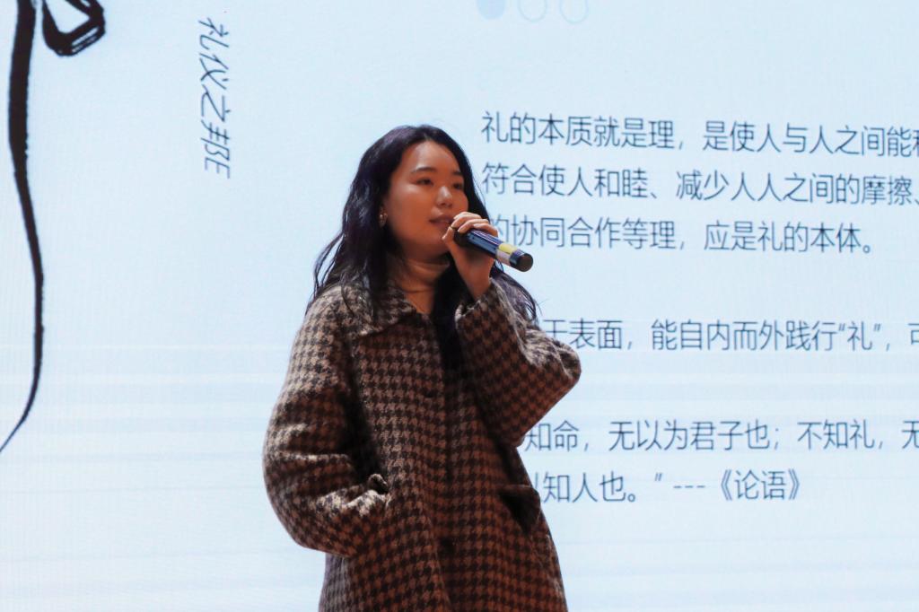 在进行自我介绍后,李筱璐老师进行第一部分的授课——知礼仪,正名分。李老师从何为“知礼”、基本礼仪,向学员们介绍了在不同的场合下着装的重要性,在她的讲解中学员们也明白了在以后的生活中需要注重自己的仪容仪表。“青马工程”作为培养具有高素质、高能力的青年马克思主义学生骨干的培训计划,也希望大家带着“礼仪、名分”,怀揣着梦想,带着青马梦奔赴前方。