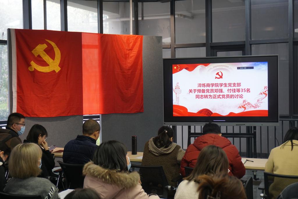 为进一步健全和完善支部组织建设,增强支部生机与活力,按照“控制总量、优化结构、提高质量、发挥作用”的工作要求。淬炼商学院学生党支部于2021年11月26日上午10时,在南湖书院国际文化展厅召开了预备党员转正大会。会议由淬炼商学院党建板块指导老师王玉勤主持召开。