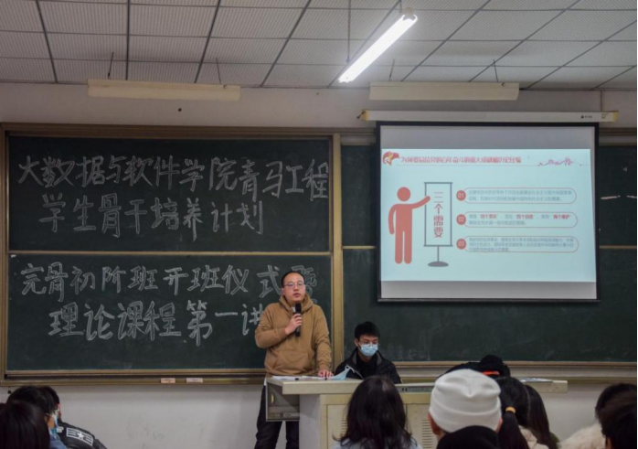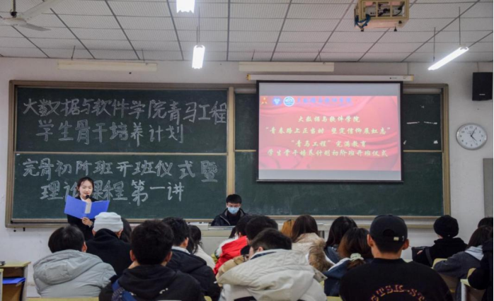 为继续在我校广大团员青年、学生骨干中着力培养一批坚持不懈地用社会主义核心价值体系和马克思主义中国化的最新成果武装的马克思主义者,成长为中国特色社会主义事业的合格建设者和可靠接班人,同时结合我校完满教育,以青马工程为实施载体,我院于2021年11月26日下午五点在S3406举办初阶班开班仪式暨第一次理论课。出席本次活动的嘉宾有大数据与软件学院副院长王焱老师、团总支书记马喆老师。