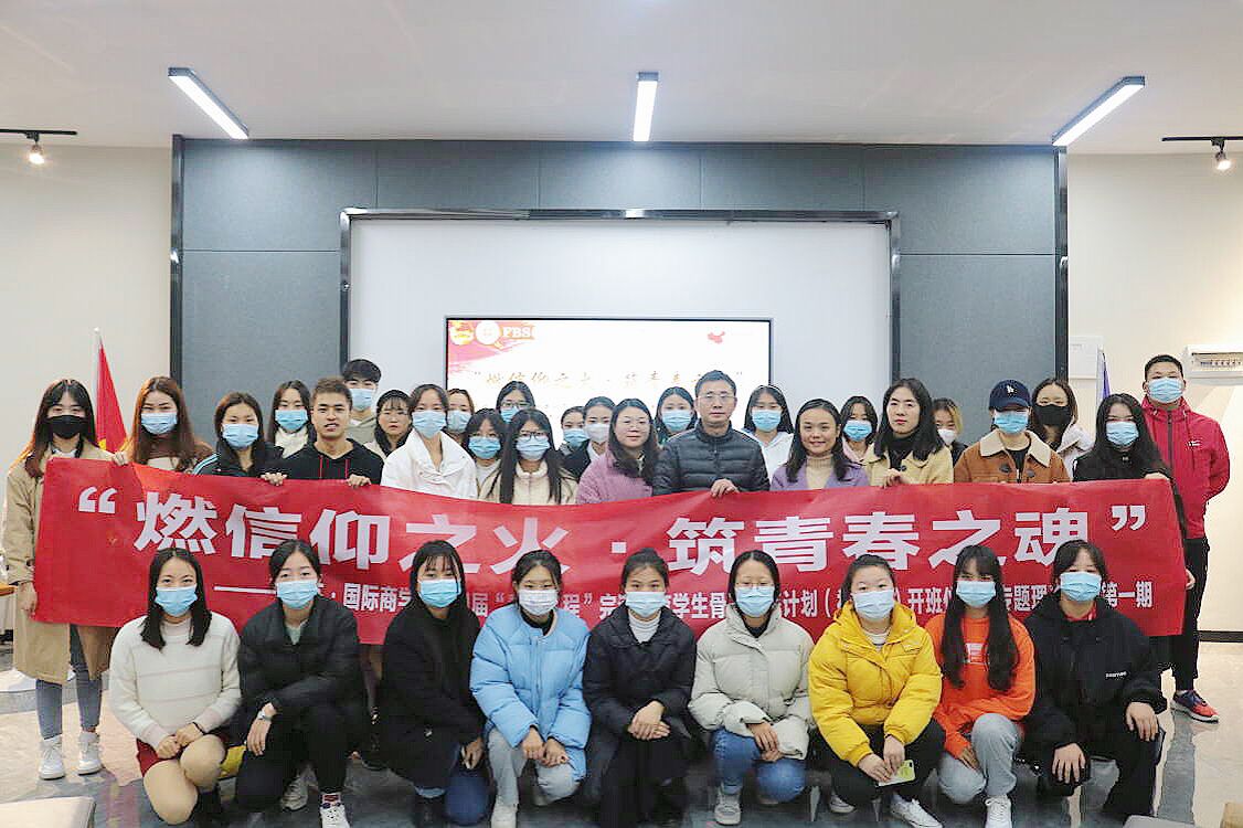 为深化实施青年马克思主义者培养工程,探索青年马克思主义者培养新模式,明确学生骨干角色定位、加强学生干部素养和人才队伍建设,淬炼·国际商学院于2021年11月24日下午5:00在南湖书院中德创意工坊开展以“燃信仰之火•筑青春之魂”为主题的第四届青马工程•完满教育学生骨干培养计划(初阶班)开班仪式暨专题理论培训第一期。出席本次活动的嘉宾有校长助理兼淬炼·国际商学院院长张平、学工副院长刘薇唯、团总支书记黄新燕、党建及组织建设版块指导老师王玉勤。