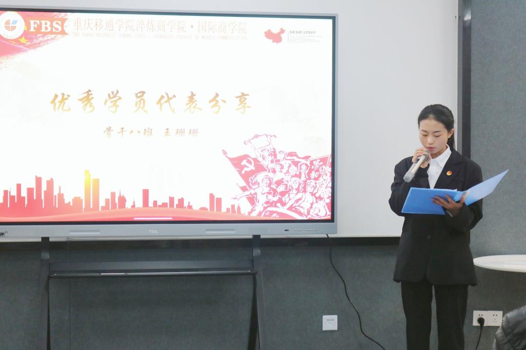第三届“青马工程”完骨初阶班优秀学员代表王珊珊表示,“青马工程”丰富的理论培训和富有特色的实践活动,能够开拓视野、增长见识,使我们得到全方位的发展。王珊珊同学的发言,也成功激起各位学员对接下来课程的期待与好奇。希望学员们能够砥砺前行,刻苦学习,勇于担当,继续发扬奋斗精神,不辜负老师们的期望。