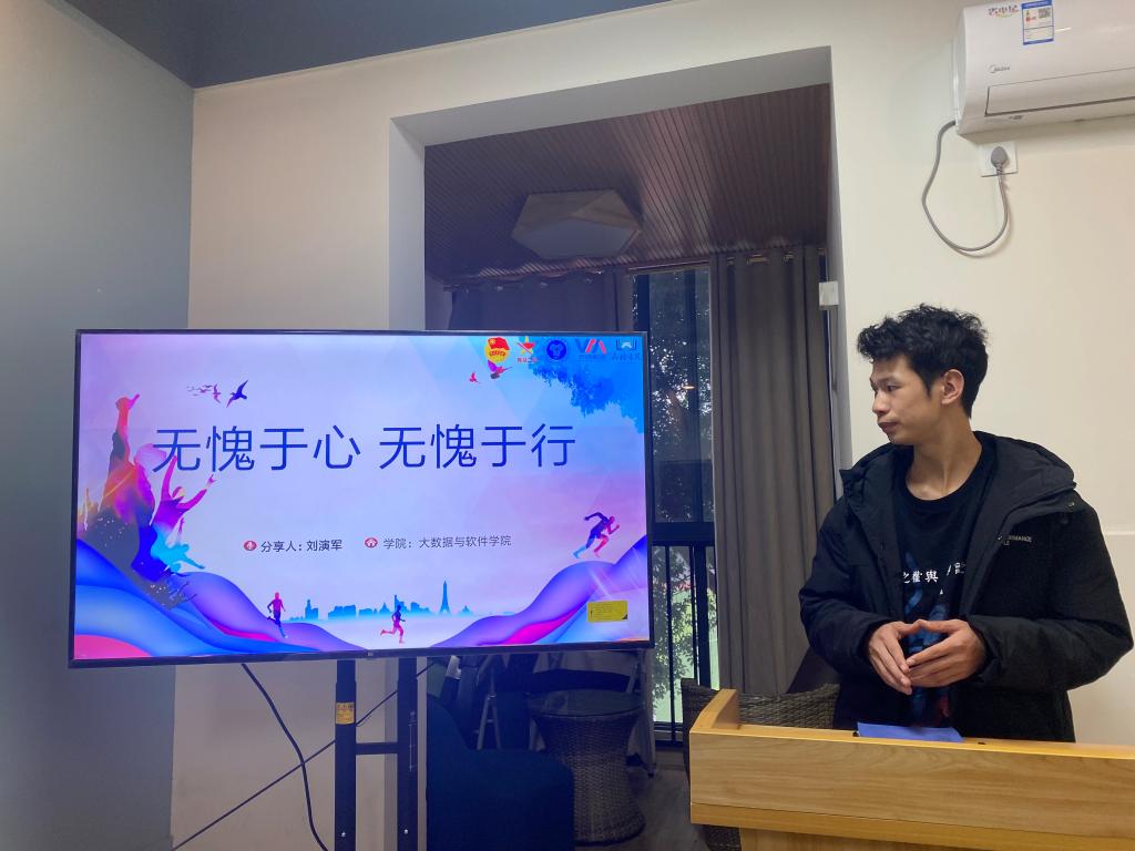 2021年11月19日第1期“廊桥邀”请到了大数据与软件学院青年志愿者协会主席刘演军同学于廊桥书院树洞学堂1分享《无愧于心,无愧于行》。