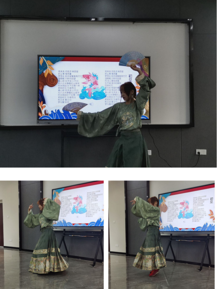 中国古典舞蹈之美,传承了中国古老的传统文化,具有圆融的动感的美学特征,它是我国古典舞蹈中的精髓,对世界舞蹈产生了一定的影响。中国古典舞蹈“气韵”是探究本门艺术价值的标尺,它既是统帅形式的重要因素,又是作品内在的生命本原。活动开始,由杨双涵同学准备的一支古风舞蹈作为开场秀,身着汉服演绎《初见》,让同学们能感受到古典舞的魅力,并且带动了现场的气氛,作为一名大数据人,也不乏发现美,感悟美的眼睛。
