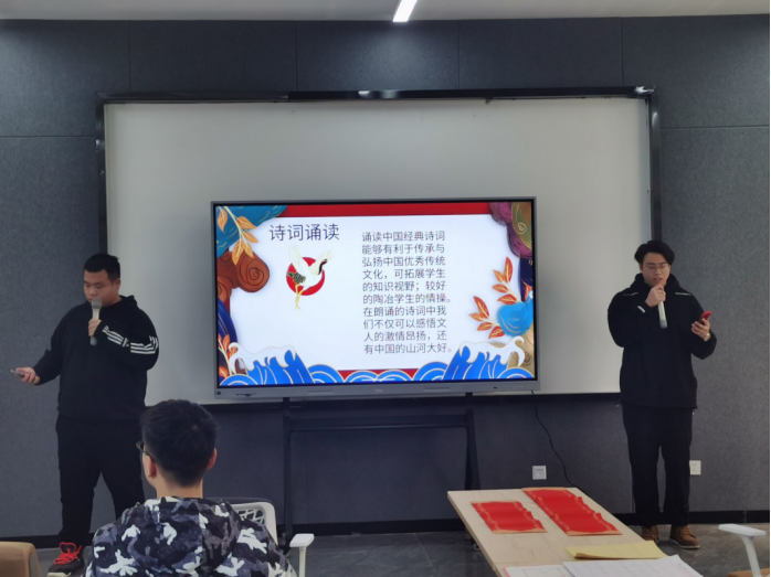 诵读中国经典诗词能够有利于传承与弘扬中国优秀传统文化,可拓展学生的知识视野;较好的陶冶学生的情操。在朗诵的诗词中我们不仅可以感悟文人的激情昂扬,还有中国的山河大好。在明冶骞以及彭泽森两位同学声情并茂的朗诵中,我们似乎看到了“月下把酒,声声向苍天”坚毅的苏武,“挑灯看剑,沙场秋点兵”的辛弃疾。上下五千年,纵横九万里,巍巍大中华,浩浩民族风…