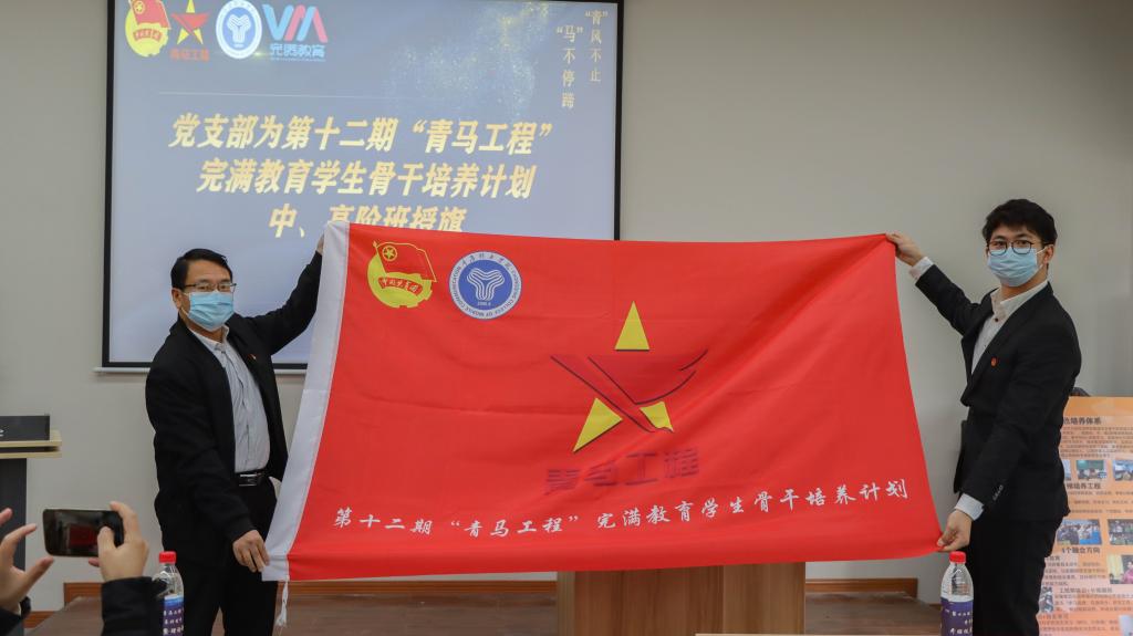 此次开班仪式很荣幸邀请到党委组织宣传部部长苏述庚老师为第十二期“青马工程”完满教育学生骨干培养计划学员代表授旗,不断加强学员仪式感和该项目品牌性。一份责任,一份担当,与“青马”完骨班的故事,将在此刻正式开启。