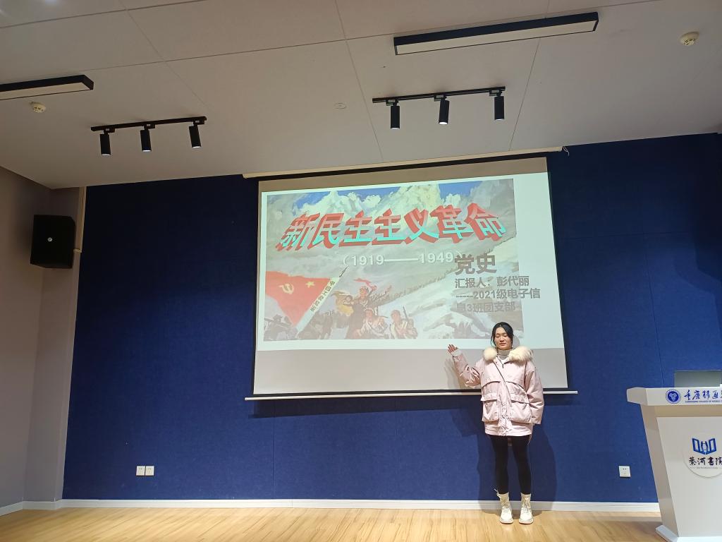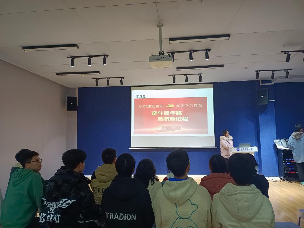 2021年是中国共产党成立100周年。党中央决定在全党开展党史学习教育,是立足党的百年历史新起点,2021级电子信息03团支部于11月15日积极开展了此次团日活动,在本次团日活动中,同学们首先参与了第一部分的活动,学习中国共产党的党史。大家一起观看了视频“党史在我心”,看完之后一起分享了感悟,作为一名刚进大学的学生,目前对党有什么认识,团支书进行抽问回答问题,团支部成员在团支书的组织下学习党史,理解党百年奋斗的光辉历程,明白中国共产党的领导、中国特色社会主义道路是历史的选择、人民的选择,立志把个人梦想融入实现中国梦的伟大实践中去。在班长、团支书的带领下,我们让同学们回去了解党的历史,从自己的途径学习,在明天进行个人分享。