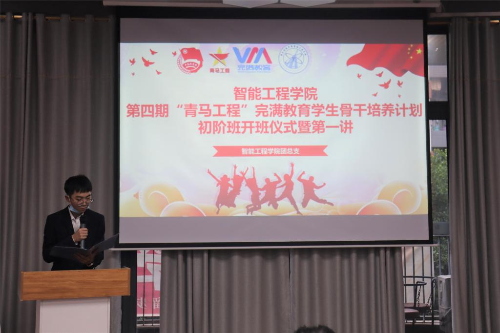 出席本次开班仪式的有智能工程学院李巧副院长、团总支书记郭菲老师、辅导员殷蓉老师以及第四期“青马工程”各组学员代表,组织部徐畅担任此次活动的主持人。