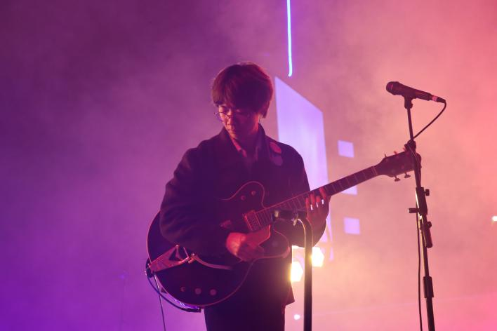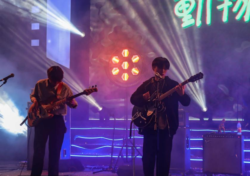 ONPH(老余和紫雾乐队),主唱特有的嘶哑嗓和配合默契的打击乐,让全场观众欢呼跳跃,不断变化的旋律,映射展示出了一场张扬且略带狂妄的青春。他们的音乐以极具感染力而闻,《partytonight》令人置身静谧而美好的畅想之中。