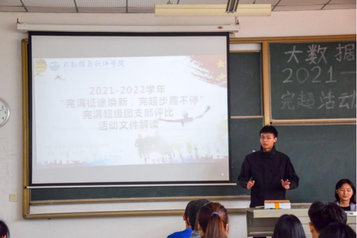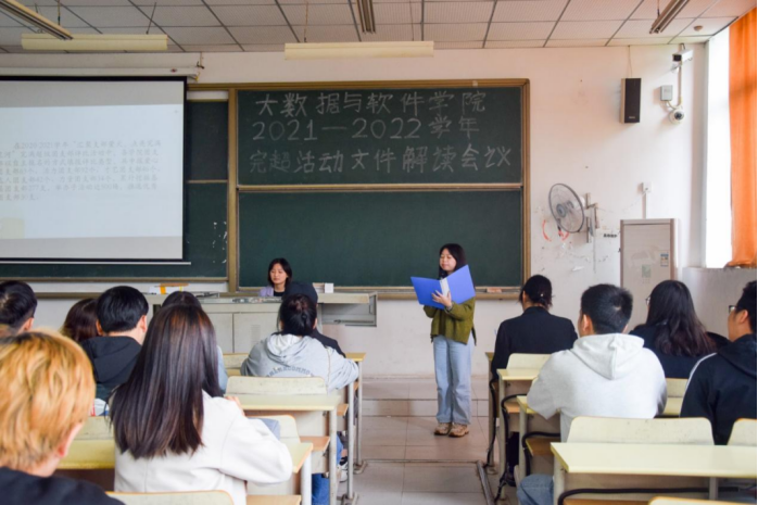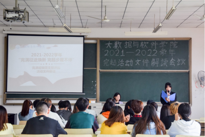 大数据与软件学院团总支组织部于2021年10月13日中午12点整在S3401教室开展2021-2022学年完满超级团支部评比活动文件解读大会。莅临本次会议的嘉宾有大数据与软件学院团总支书记马喆老师、通信与信息学院通信工程专业潘露琴学姐。参会人员有2020级和2021级全体团支书。