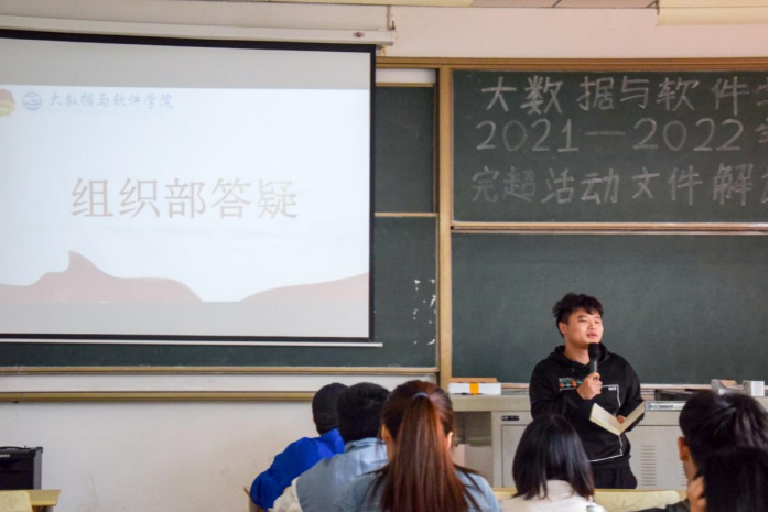 大数据与软件学院团总支组织部罗泽勇同学耐心的同学们解答疑问,并对此次会议进行了补充,提醒大家在举办”完超“活动的期间,注意时间节点,和相关材料的汇总。