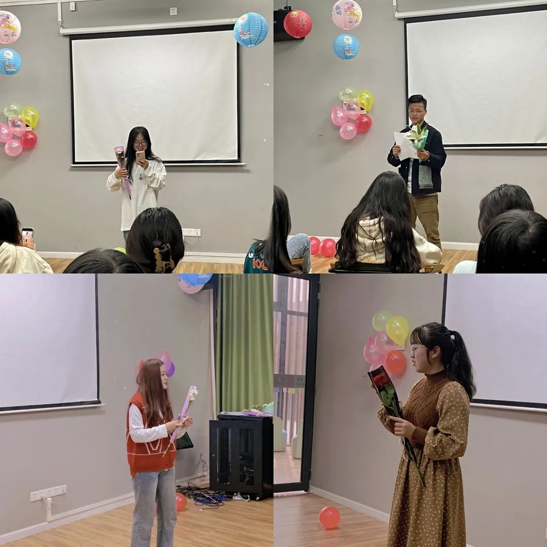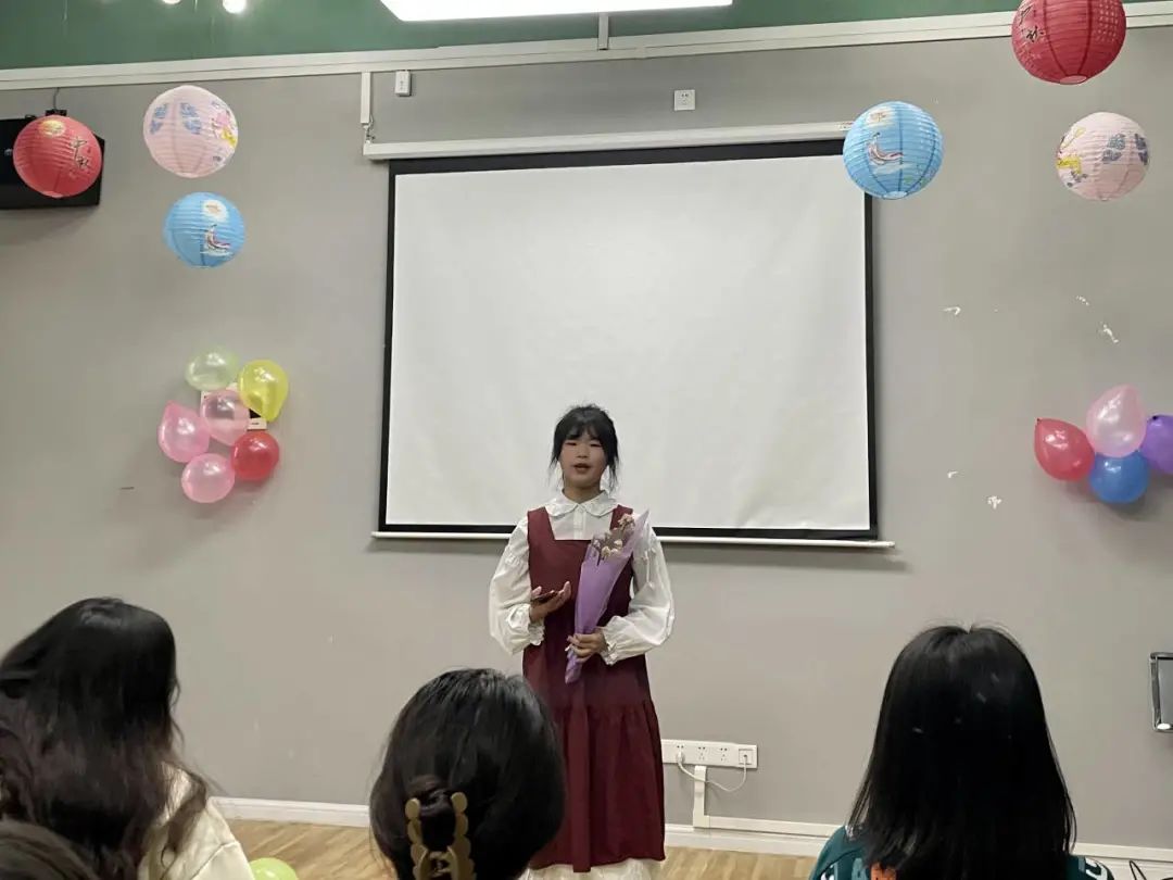 在本次活动中参与者们还玩了与花相关游戏。主持人简单的介绍了《听歌传花》的游戏规则。同时在游戏当中,参与者还向大家朗读苏东坡的《蝶恋花·春景》,“花褪残红青杏小。燕子飞时,绿水人家绕……”还有主持人向大家介绍了关于花的来历、传说等。最后在参与者合唱《最美的期待》,在悠扬的歌声当中,此次活动圆满完成。在游戏中同学们不仅感受到了游戏的快乐,而且还了解了更多关于花的故事、传说,在参与者吟诵的诗中体会了古人对花的赞美和所表达的花的美。让同学们对花有了更进一步的认识。