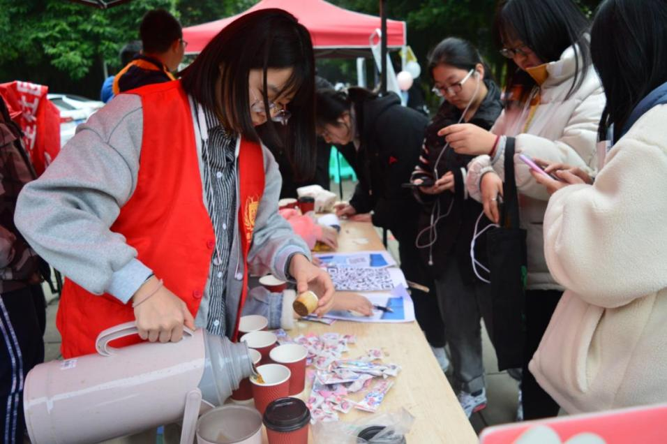 位于黄桷树广场面向移通学院全体师生开展的第一个活动“爱心加油站”开启。在寒冷的冬季,匆匆忙忙的路上难免会感受到刺骨的寒风,为了减少师生们在忙碌的校园路上受到的风寒,02团支部的同学们早早的煮好了热热的姜茶,并定时段由相应机动人员统一送往黄桷树广场为同学们传递来自他们的温暖。在“爱心加油站”的活动站点里,班委们带领着支部同学,向奔波在上课路上的同学们宣传着此次活动,为大家递上姜茶,并让大家在“爱心留言板”上写下了自己在这个冬天对陌生人的温暖祝福。一杯红糖姜茶,捧在手里,温暖的是身体,喝在胃里,治愈的是心灵。生活的乐趣,不只在匆匆忙忙的奔波,还有在冬天里捧着姜茶,放慢脚步,感受温暖。