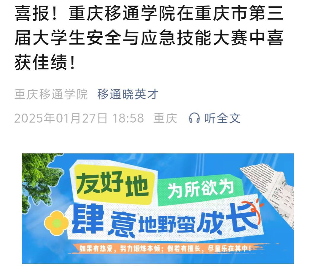 上一篇:喜报!重庆移通学院青年志愿者联合会成为2025年度中国志愿服务发展指数组织
