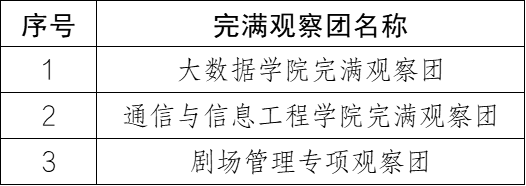 为更好展现本学年观察成果,不断改善观察评估机制,客观公正的评价其完满教育活动,充分发挥完满观察团及观察员“品鉴师”的作用,校团委调研部整合各观察团日常提交的相关工作材料,组织开展评审会,最终评选出3个优秀完满观察团。现将评选结果公示如下: