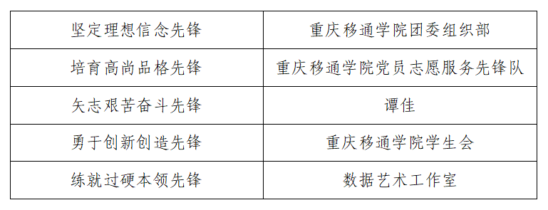 经过评审团的打分以及上级团组织对各学院平日工作的综合考量,最终评选出5个优秀个人(团队),作为我校代表参加重庆市2022 年“双城青才校园先锋”的最终评选。至此,本次2022 年“双城青才校园先锋”校内选拔取得圆满成功。