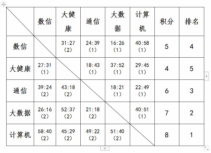 重庆移通学院綦江校区第二届“新生杯”系列赛篮球赛小组赛已结束,现公示小组赛成绩及积分表