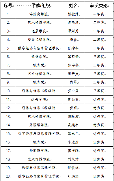 为提升我校青年志愿者的整体服务水平,展现青年志愿者的精神风貌,扎实推进志愿服务制度化、常态化、项目化发展,不断地为我校志愿服务事业的高质量发展提供强有力的支撑。“志YUAN由你益起来”重庆移通学院第二届志愿服务技能大赛比赛正式启动后,经过选拔赛、复赛、决赛的激烈角逐,通过公平公正比赛评选,最终共20名选手获奖。关于“志YUAN由你益起来”重庆移通学院第二届志愿服务技能大赛决赛的获奖名单如下: