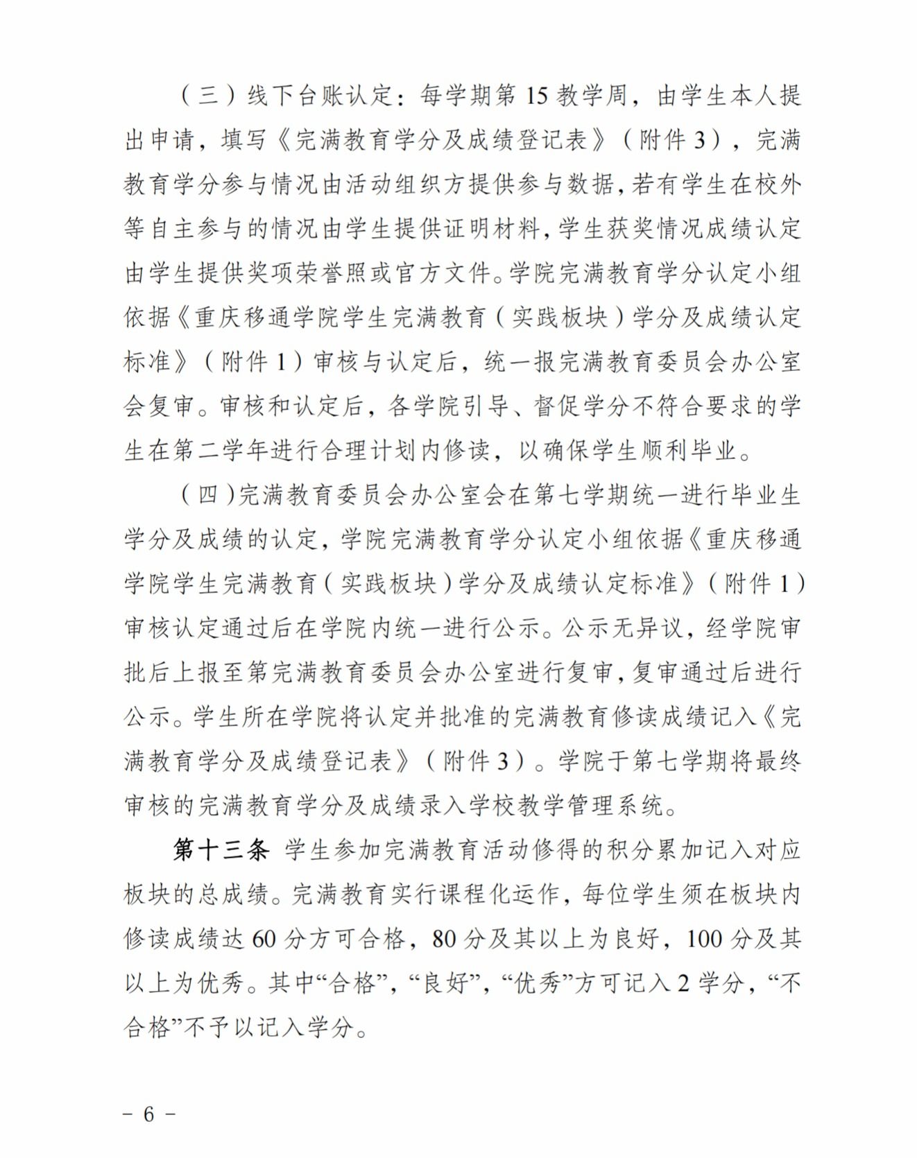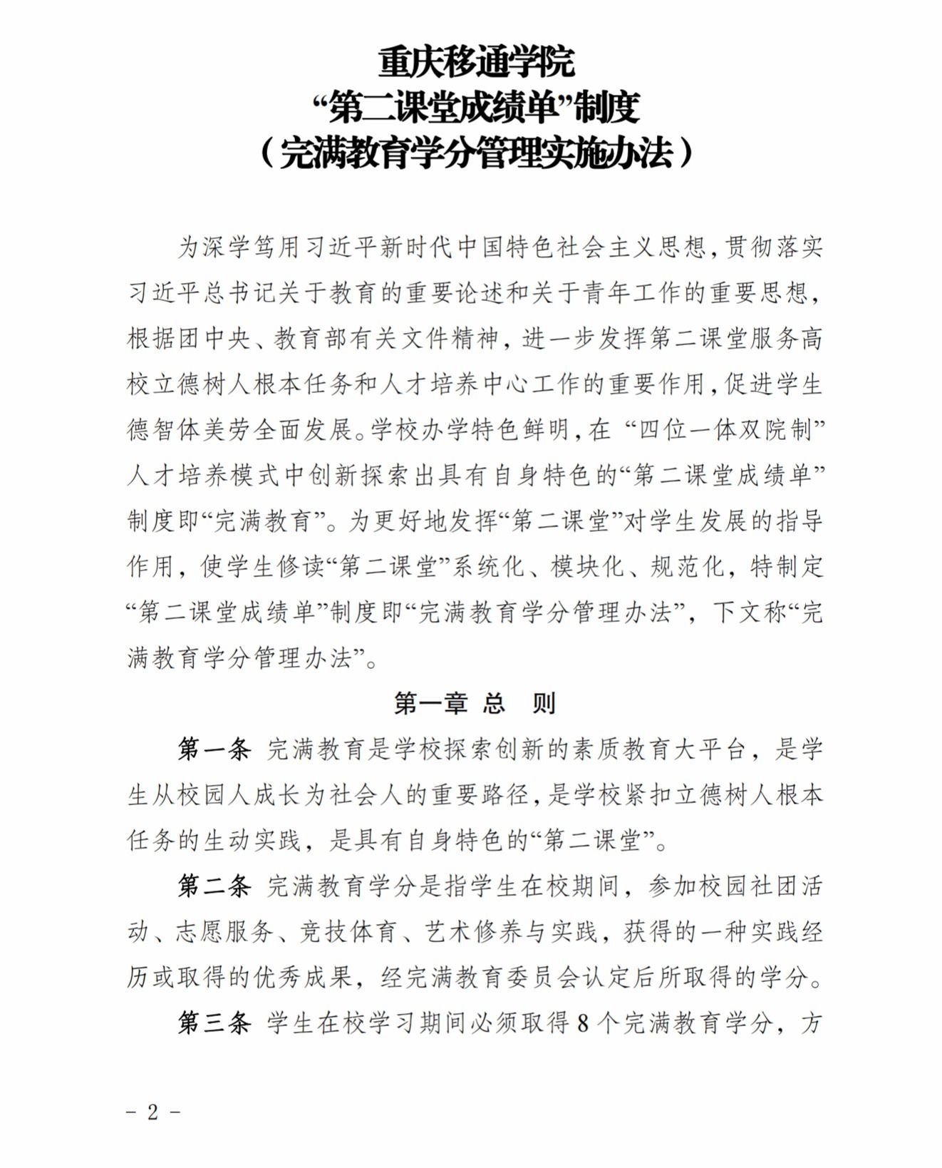 《重庆移通学院重庆移通学院“第二课堂成绩单”制度(完满教育学分管理实施办法)》
