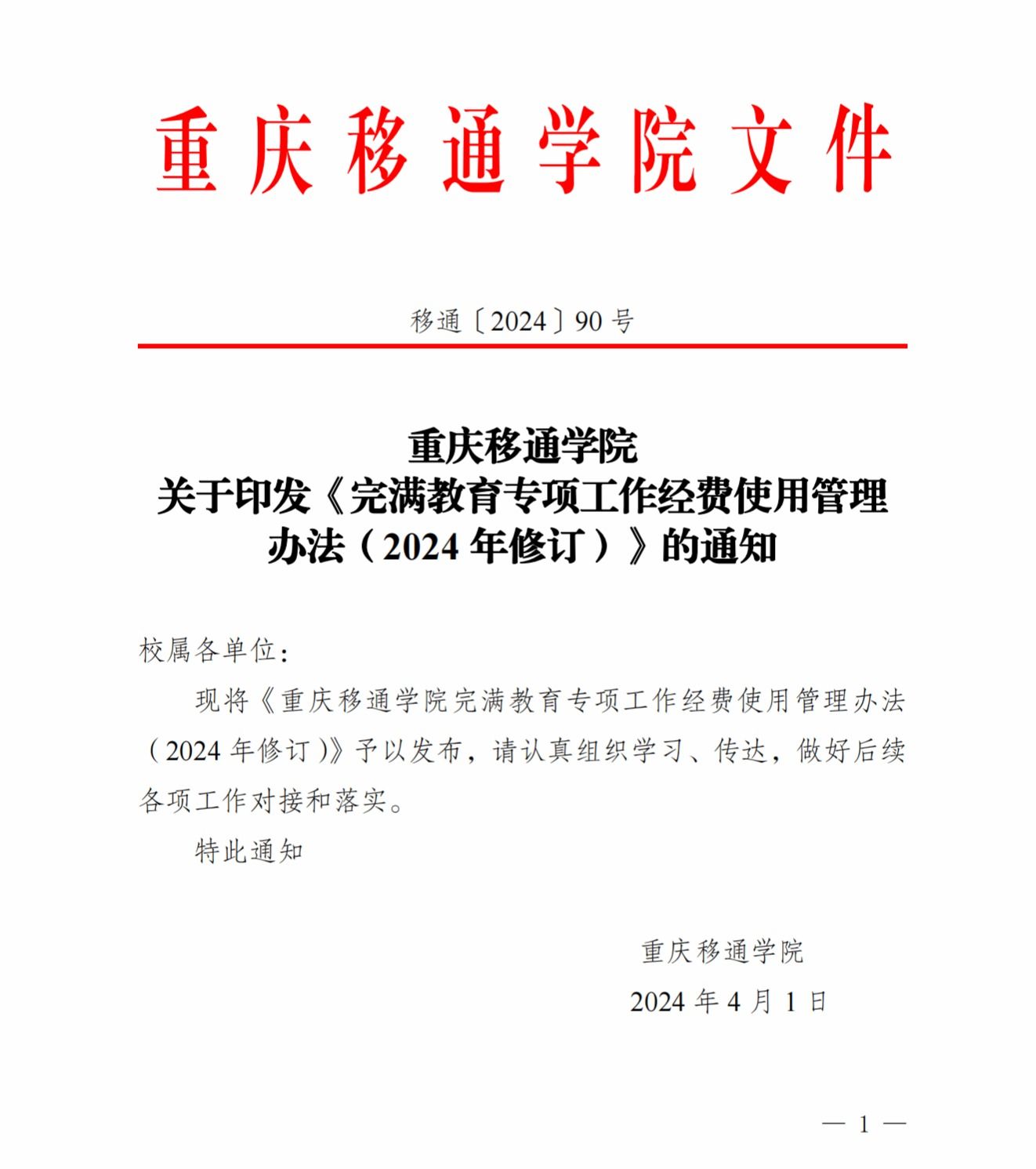 移通〔2024〕90号关于印发《重庆移通学院完满教育专项工作经费使用管理办法(2024年修订)》的通知.pdf