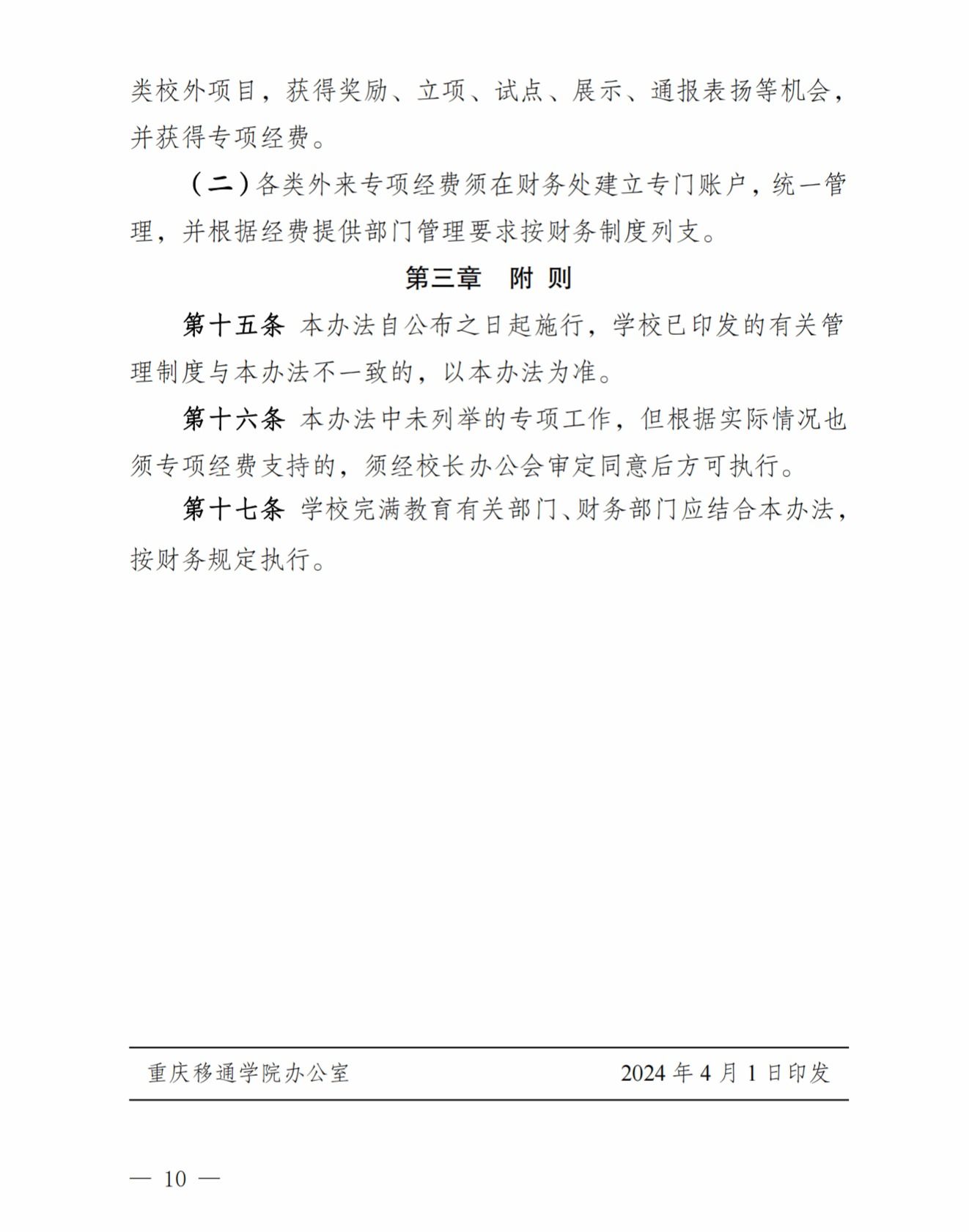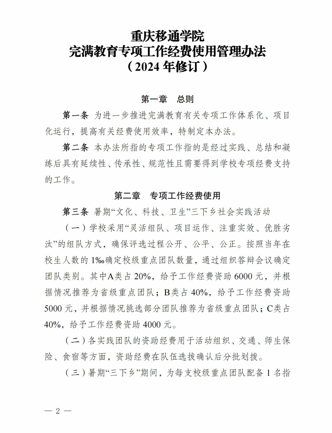 《重庆移通学院完满教育专项工作经费使用管理办法(2024年修订)》