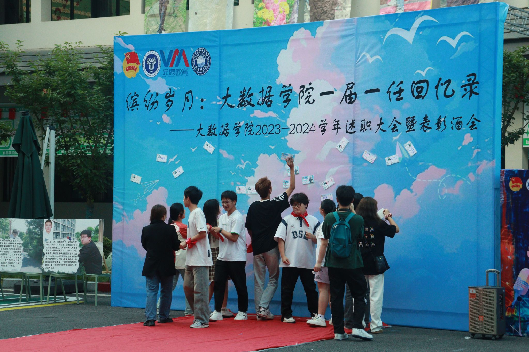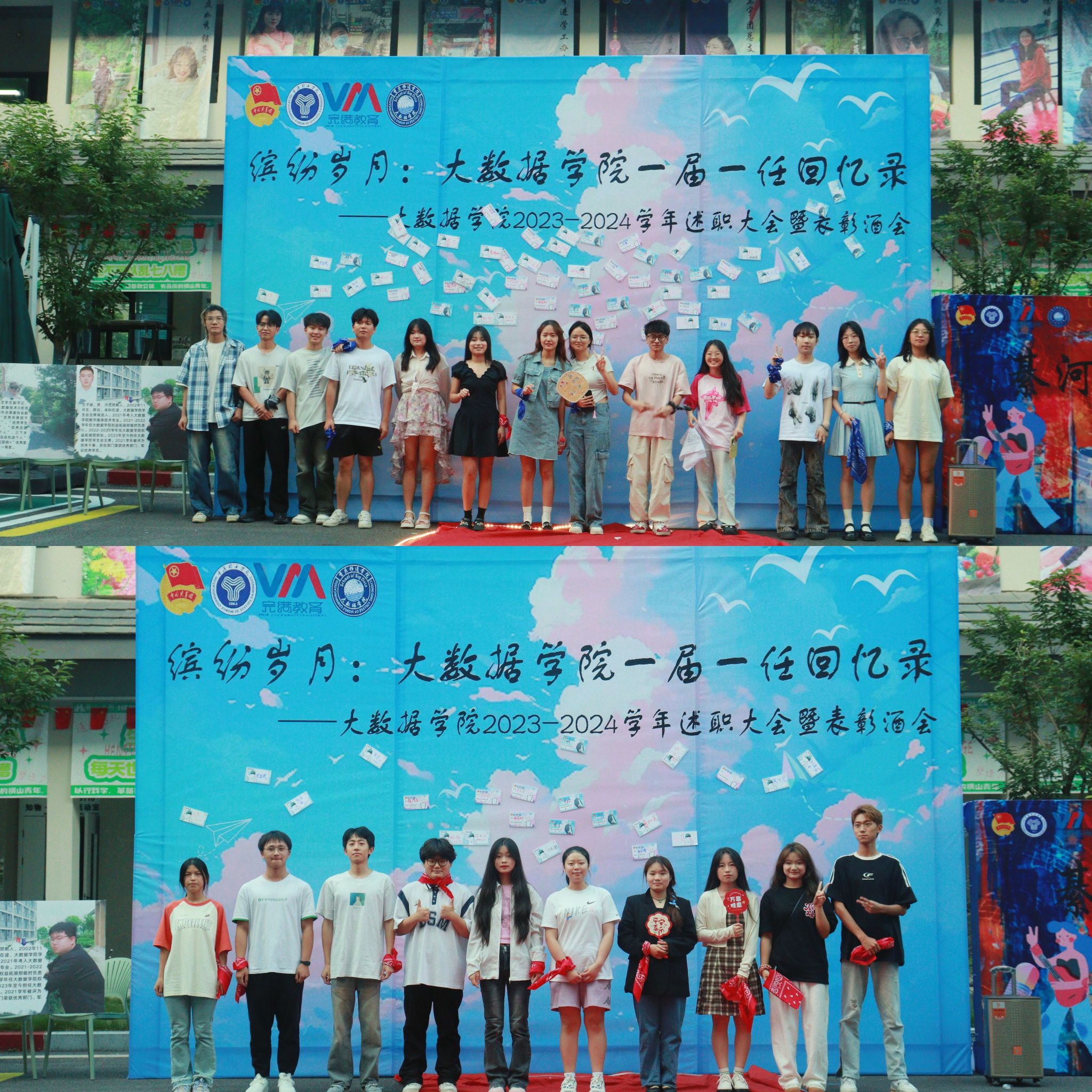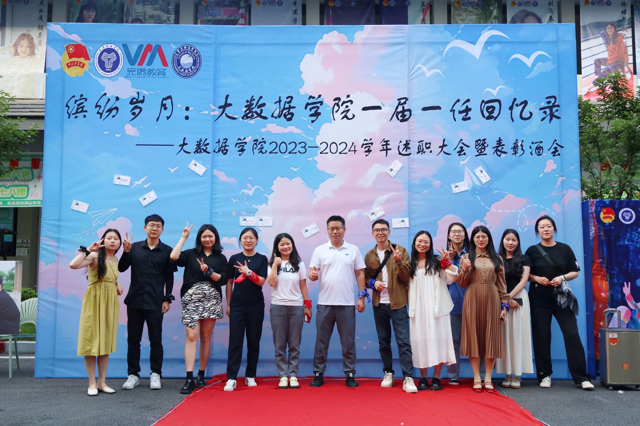 为进一步加强学院团总支、学生会学生组织建设,全面回顾本学期学生组织各项工作,总结工作经验和成效,明确未来方向,进一步提高全院学生组织干部干事的工作积极性,2024年6月5日,大数据学院在横山书院开展了2023-2024学年第二学期学生组织述职大会暨述职酒会。副院长阙小梅老师、副院长吕云山老师、团总支书记兰宇老师、学工办主任李进老师、全体完满教育板块和特色工作指导老师、第一届第一任团总支学生会主席团、各部门部长代表、优秀干事代表共同出席并参加了此次述职大会和表彰酒会。