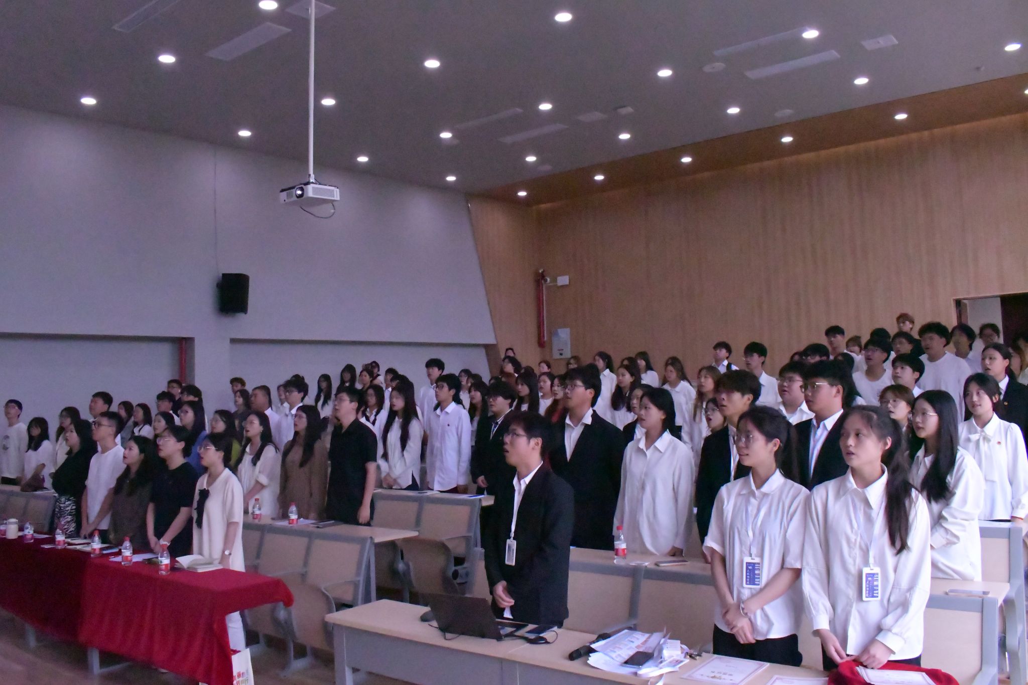 下午16:00,全体参会人员汇聚“移通之巅”横山书院,述职大会在阶梯教室隆重举行,由邱浩宇同学主持。大会现场庄严肃穆,全体参会人员起立齐唱团歌,歌声嘹亮且回荡在移通校园,奏响属于大数据人的青春礼赞,拉开工作总结和规划的帷幕。