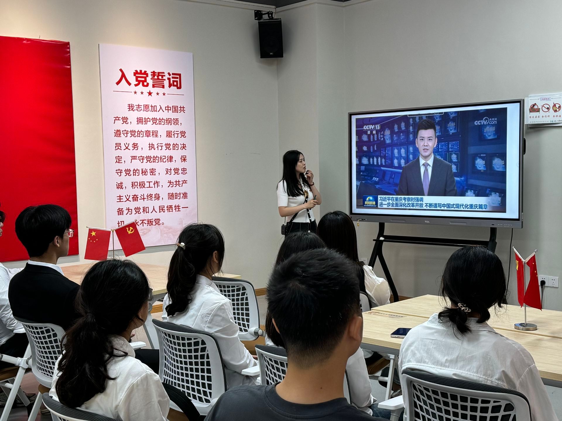 “2024年4月22日至23日,习近平总书记在重庆市考察调研。党的十八大以来,总书记三次来到这里,从战略和全局高度审视谋划重庆发展。从2016年总书记讲到‘共抓大保护,不搞大开发’,到2019年总书记要求重庆‘在推进西部大开发形成新格局中展现新作为、实现新突破’,再至今年总书记对重庆因地制宜发展新质生产力、促进区域协调发展、推动高质量发展行稳致远进行深刻指导,这毋庸置疑展示出了大重庆之变化,总书记之关切,同时也应该引发起青年一代的学习思考。”唐老师认为习近平总书记的话作为指向标一般指导着重庆的发展,同时也为青年的未来提供了明确的成长方向。随后,活动进入了视频回放环节,大家通过观看总书记在重庆的相关视频资料,直观地感受到了他的为民情怀。