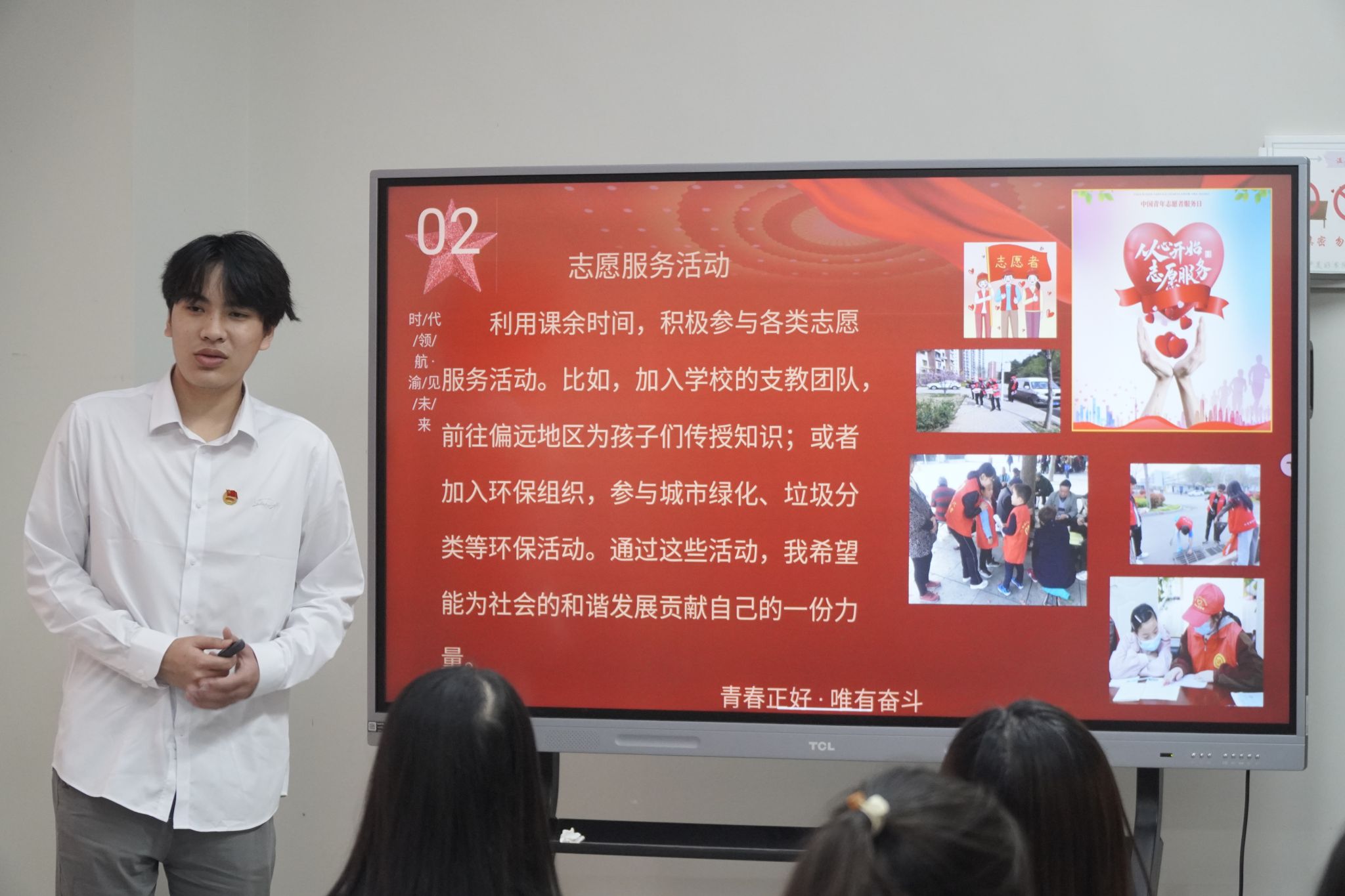 老师通过领学习近平重要总书记讲话中的核心要义和实践方向,使同学们对总书记的思想有了更深刻的认识。“总书记在重庆考察时,不仅关心经济发展,更关注民生福祉,强调要坚持以人民为中心的发展思想。让我更加坚定了要深入基层、服务人民的决心。”蒋亚男同学听完老师的领学后深受启发,紧接着发表了他的感悟,并且他还从志愿服务活动和养老关爱活动两个方面详细分享了他的思考,同时也希望作为广大青年学子要牢记总书记的嘱托,勇担时代使命,深入基层实践,为实现中华民族伟大复兴的中国梦贡献青春力量,携手同行,共同书写新时代的华丽篇章。