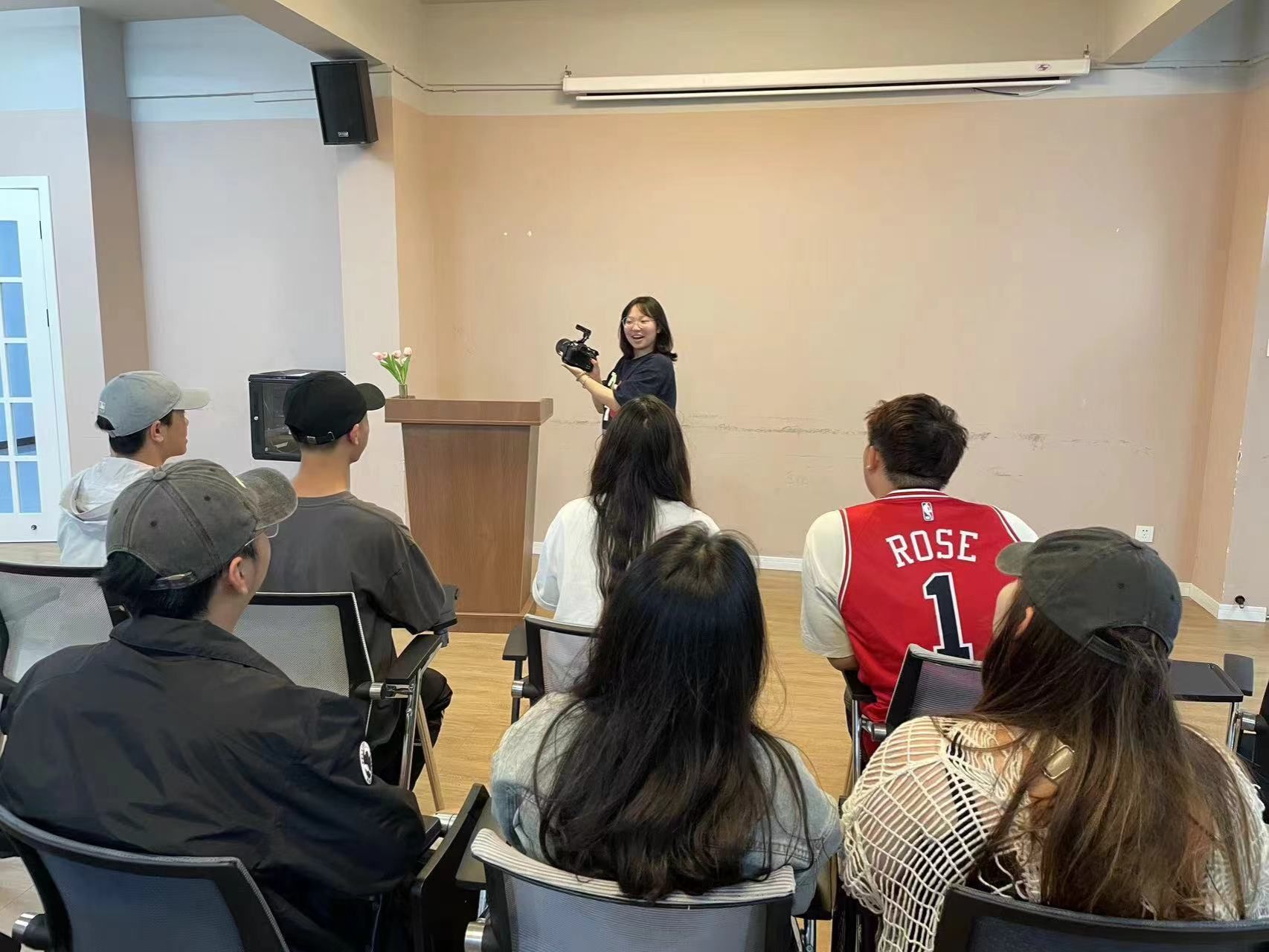 在火锅文化节开始前,摄影剪辑团队的负责人——李虹漫,为同学们进行了一次系统的培训。李虹漫同学从摄影的基本原理讲起,详细介绍了光圈、快门、ISO等参数的设置方法,以及如何根据不同的光线条件和拍摄对象进行调整。还分享了许多实用的拍摄技巧,例如何捕捉了火锅文化节的精彩瞬间,如何利用构图突出主题等。