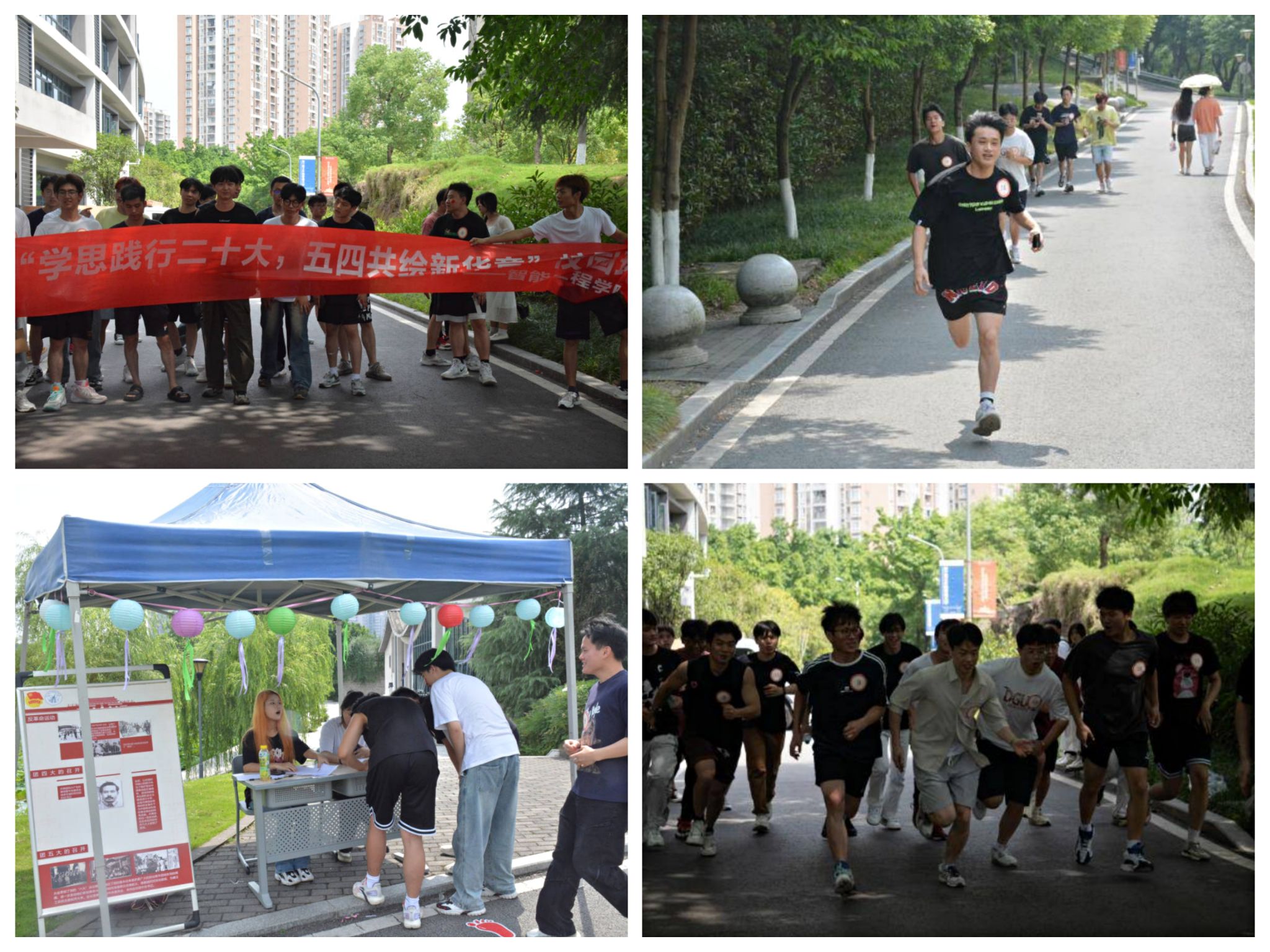 知行合一,行稳致远。通过学、思、悟等环节,为进一步夯实同学们的学习成果,设置校园环跑答题的形式,进一步增强同学们对党的二十大精神、五四精神、青马精神以及党史的学习及把握。本环节在北校区行者公园设立了六个答题点,第九教学楼(出发时不答题)—竹逸书院—梅若书院—松格书院—荷悦书院—天渠书院—第九教学楼(返回时答题),参赛队伍三人组队,共18队。小组成员同时到点位方可答题,累计正确率越高、速度越快、得分越高。