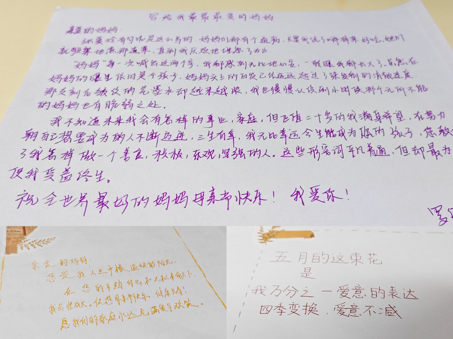 在这个温馨而意义深远的母亲节活动中,最让人难以忘怀的莫过于学生们向母亲表达爱意的种种方式。有的学生选择通过深情的信件抒发内心对母亲的感激,字里行间流露出无尽的敬爱与思念。有的孩子则选择了现代的方式,透过电话或视频,向母亲传达节日的问候。在通话的过程中,我们看到了母亲们惊喜的表情,听到了温暖人心的话语。更有同学通过手工DIY花朵,用心灵手巧制作出美丽的纸花作为礼物,以此表达对母亲的特别感谢。当信封和手工花朵亲手送到母亲手上的那一刻,我们看到了许多母亲眼中的泪花,那是激动、感动、幸福的泪水。这些感人的场景,让我们更加深切地感受到了母爱的伟大与纯粹。