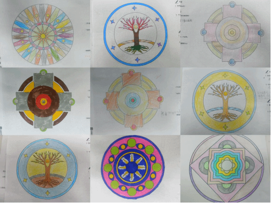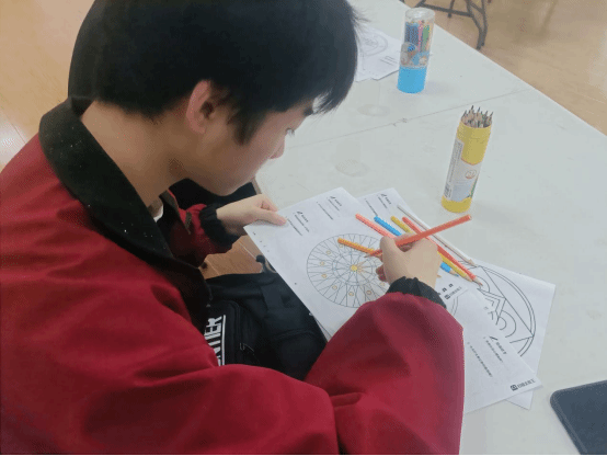 曼陀罗绘图疗法,作为一种心灵治愈的方式,正在现代社会中逐渐受到关注,它为人们开启了一扇通往内心深处的秘密之门。首先,赵青煜老师引出“曼陀罗”一词,它既是一个佛教名词,又是一种非常美丽而神秘的花。曼陀罗绘画一般是以圆形或正方形为主,相当对称,有中心点。这种结构使得绘画者在创作过程中能够聚焦于中心点,逐渐扩展至整个画面,有助于培养内心的平静和专注。在赵青煜老师的引导下,同学们尝试着绘制曼陀罗,通过绘画的过程,他们开始深入探索自己的内心世界,了解自己的情感、需求和价值观。