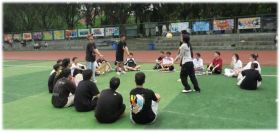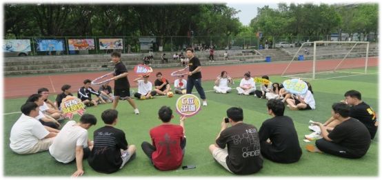 活动一开始,同学们陆陆续续到南校区足球场集合完毕。团支书王昊带领同学们做了一些简单的伸展运动。随着伸展运动的结束,同学们的身体逐渐舒展开来,每个人脸上都洋溢着期待和兴奋。今天,我们即将进行一场热闹非凡的班级趣味运动会,这不仅是对我们沟通能力的考验,更是对我们团队合作的锻炼。