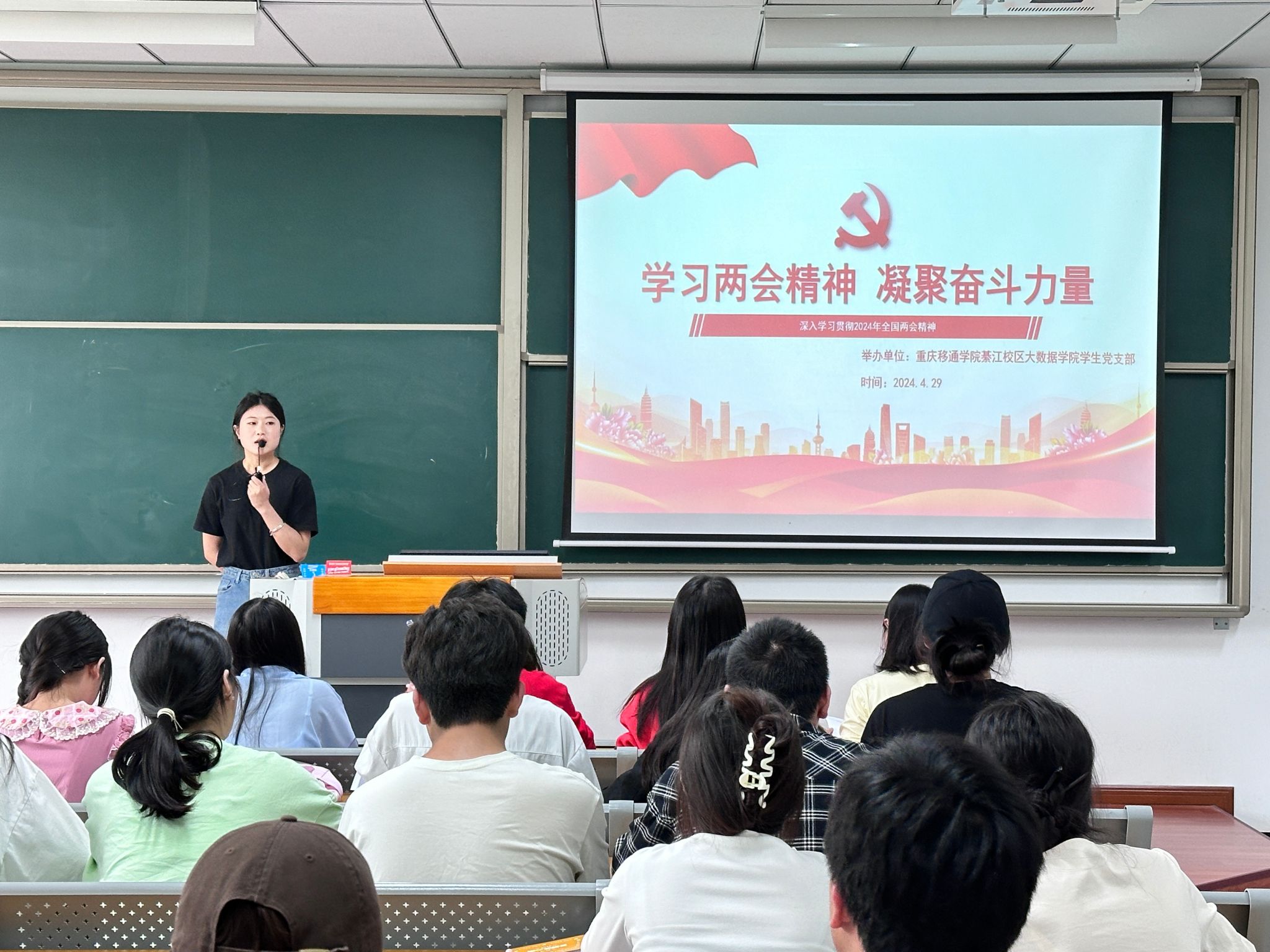 在新中国成立75周年、实现“十四五”规划目标任务的关键一年的重要年份,全国两会的召开传递出咬定青山不放松的坚定信心,吹响风雨无阻向前行的奋进号角。为深入学习贯彻习近平总书记在全国两会期间的重要讲话和全国两会精神,大数据学院学生党支部于2024年4月29日在勤者楼404教室组织开展两会精神学习的主题党日活动,会议由张鑫同志主持。